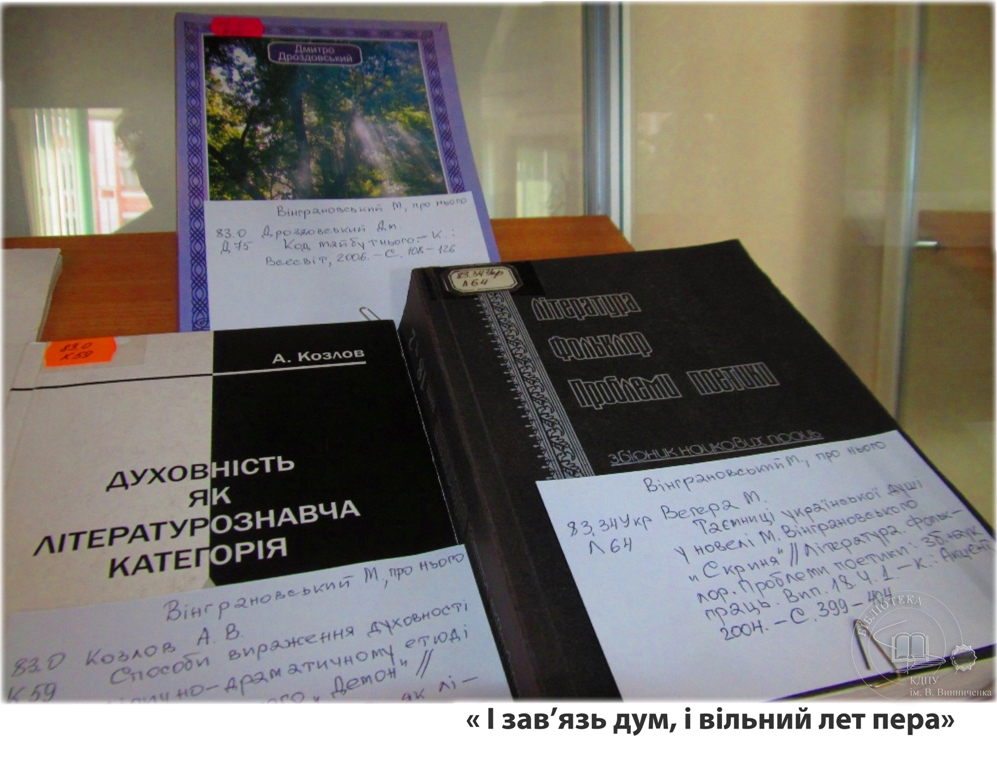 В читальному залі філологічних дисциплін з 02.11 по 15.11. 16. експонується виставка «І зав’язь дум, і вільний лет пера», присвячена 80-й річниці від д. н. відомого українського поета, прозаїка, сценариста, режисера - постановщика, кіноактора Миколи Вінграновського. Допитливого читача запрошуємо детальніше ознайомитися з творчістю цього талановитого поета.