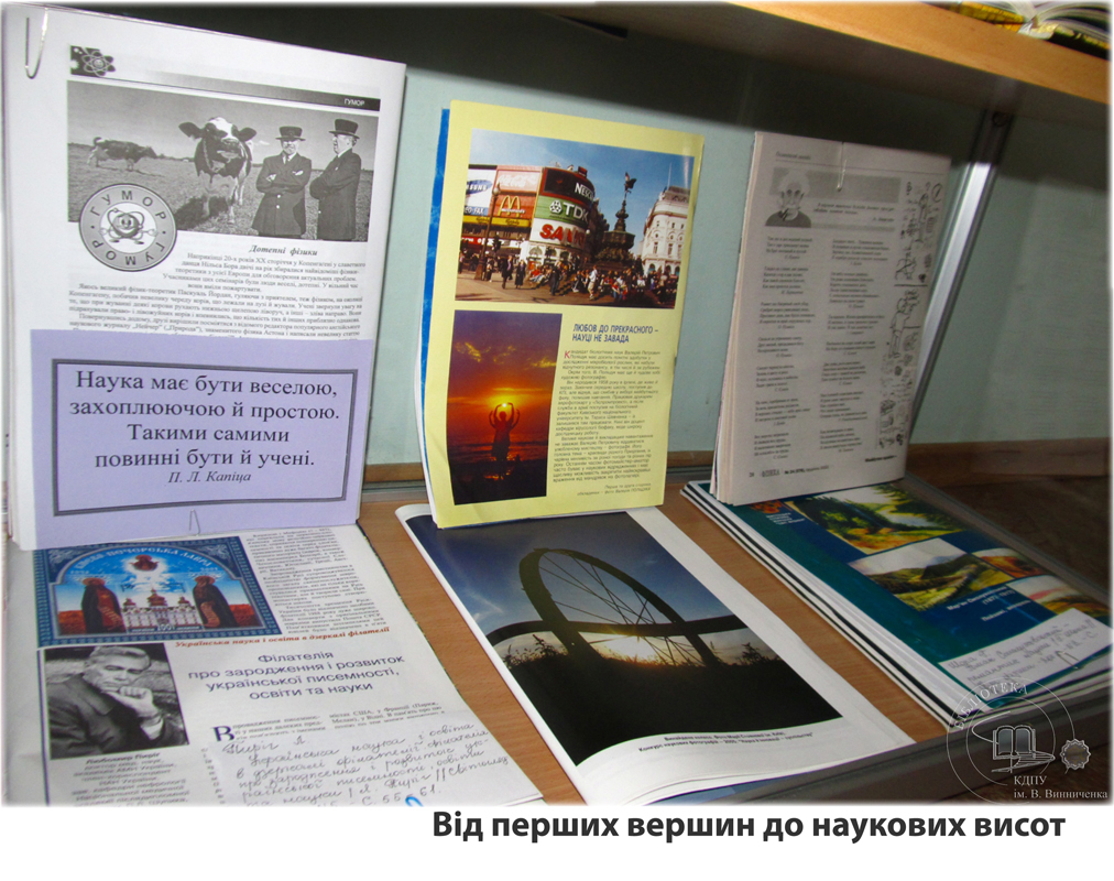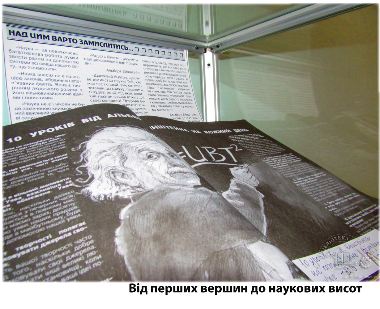 Шановні читачі, до Всесвітнього дня науки універсальний читальний зал презентує виставку «Від перших вершин до наукових висот». Книги та періодичні видання познайомлять Вас із відомими науковцями, їхніми досягненнями в галузі фізики, медицини, авіаційного конструювання, а також із загадковими фактами їхнього життя.