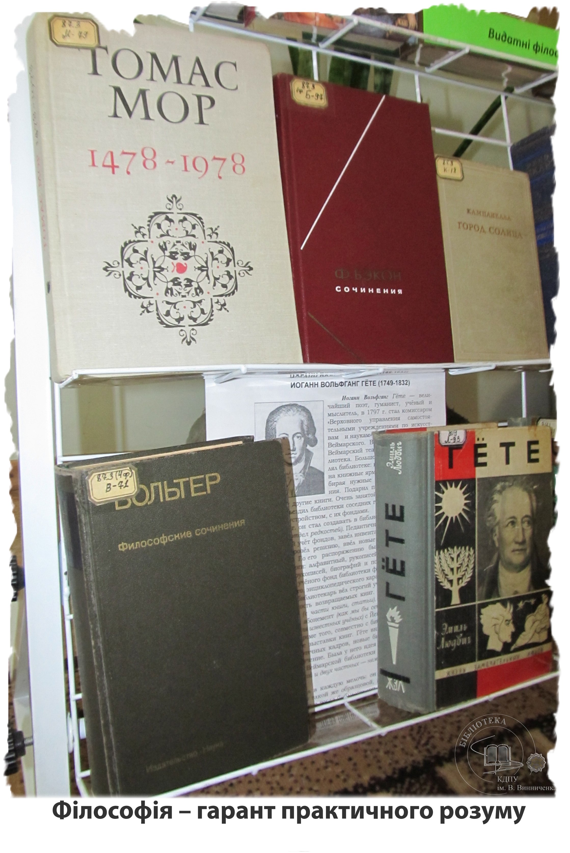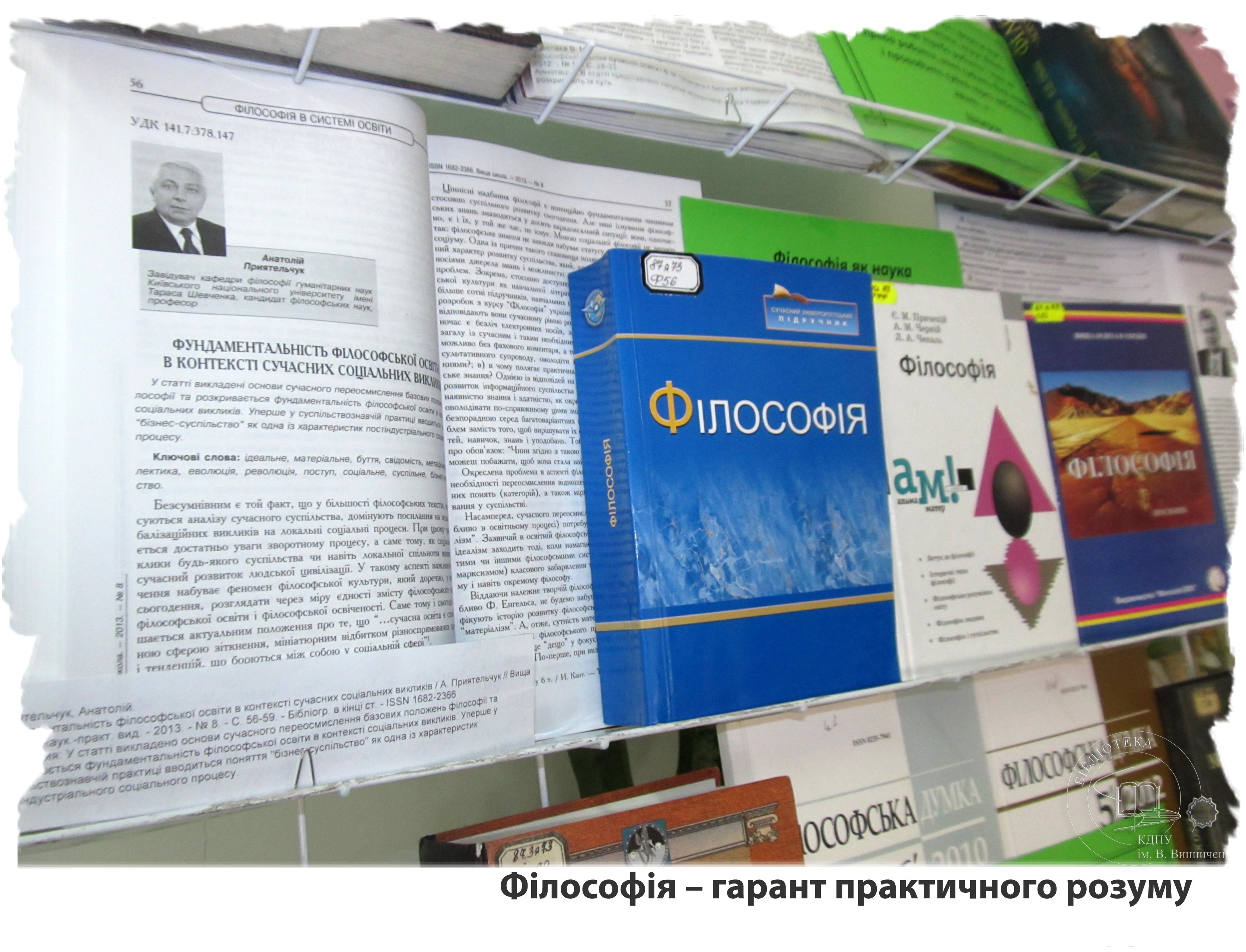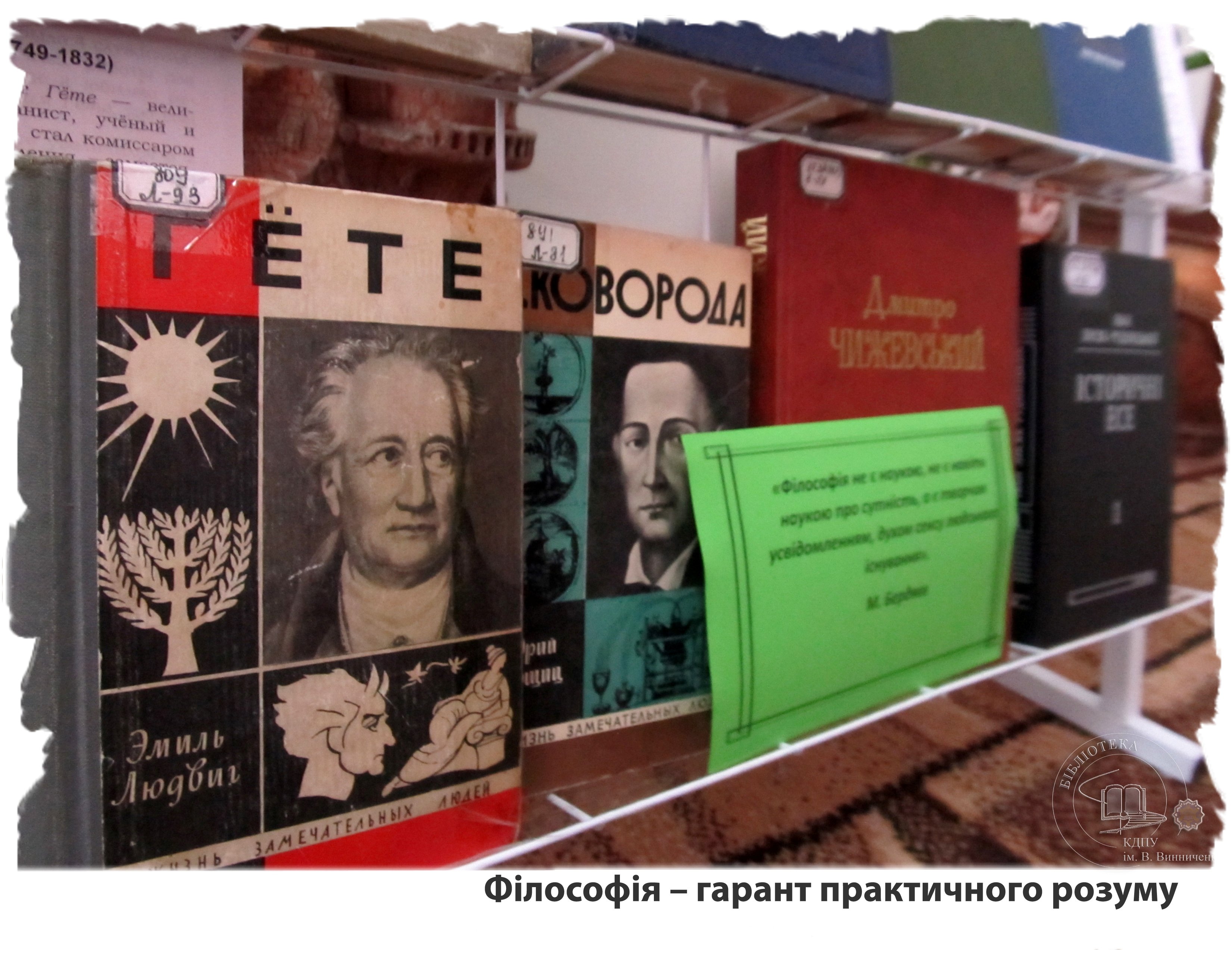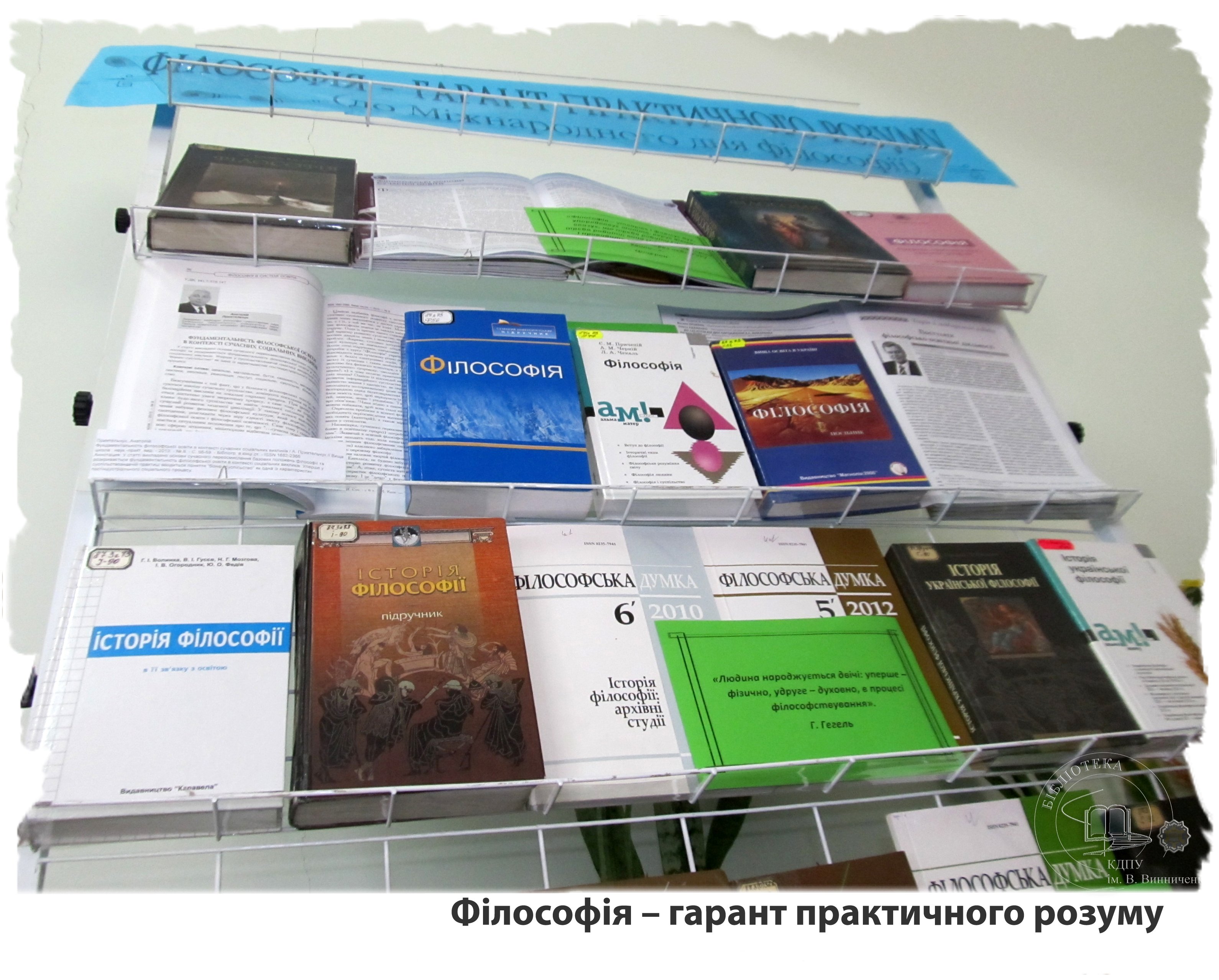До Міжнародного дня філософа універсальний читальний зал пропонує вашій увазі виставку «Філософія – гарант практичного розуму». Прагнення стати не тільки освіченою, а й сучасною людиною не може здійснитися без вивчення філософії, яка завжди була джерелом віковічних запитань людського духу щодо сенсу життя та смерті, таїни людського існування, розгадки секретів пізнання світу та історії.