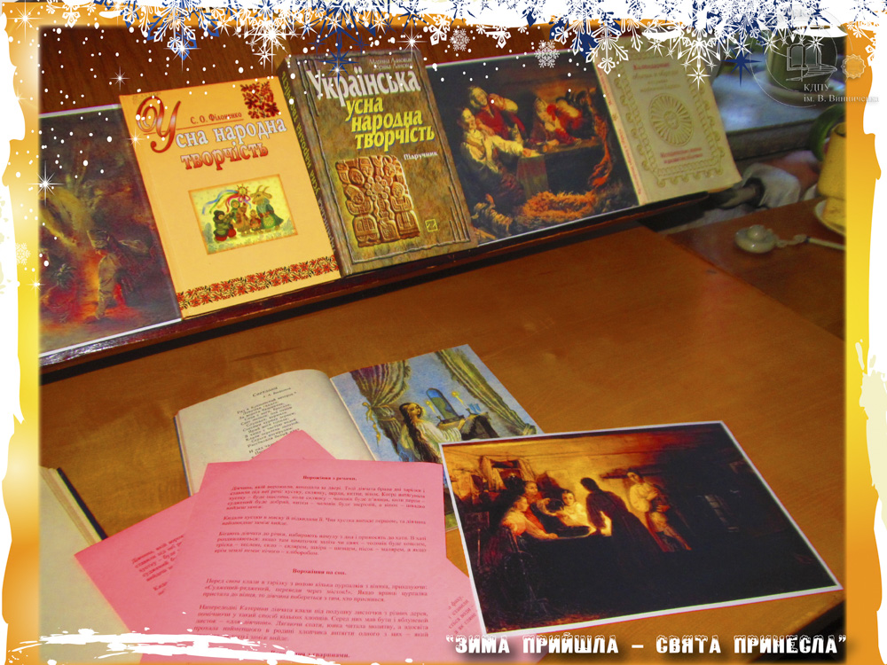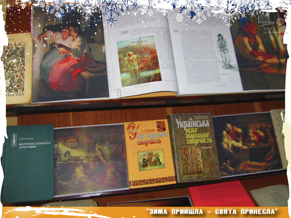 Запрошуємо наших читачів відчути цей подих свят та переглянути виставки, присвячені зимовому циклу звичаїв та традицій нашого народу. Кольорові ілюстрації картин виставкової експозиції «Зима прийшла – свята принесла» переконують, що зимі раді, як діти, так і дорослі: розваг вистачає для всіх.