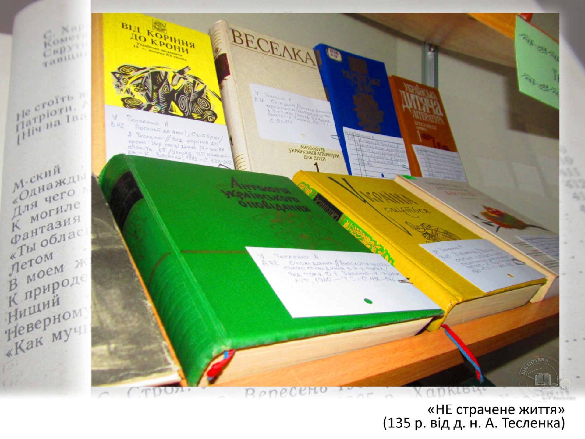В читальному залі філологічних дисциплін з 1 березня протягом тижня експонується книжкова виставка, яка присвячена видатному українському письменнику-реалісту початку ХІХ століття, знавцю життя і психології українського народу А. Ю. Тесленку.