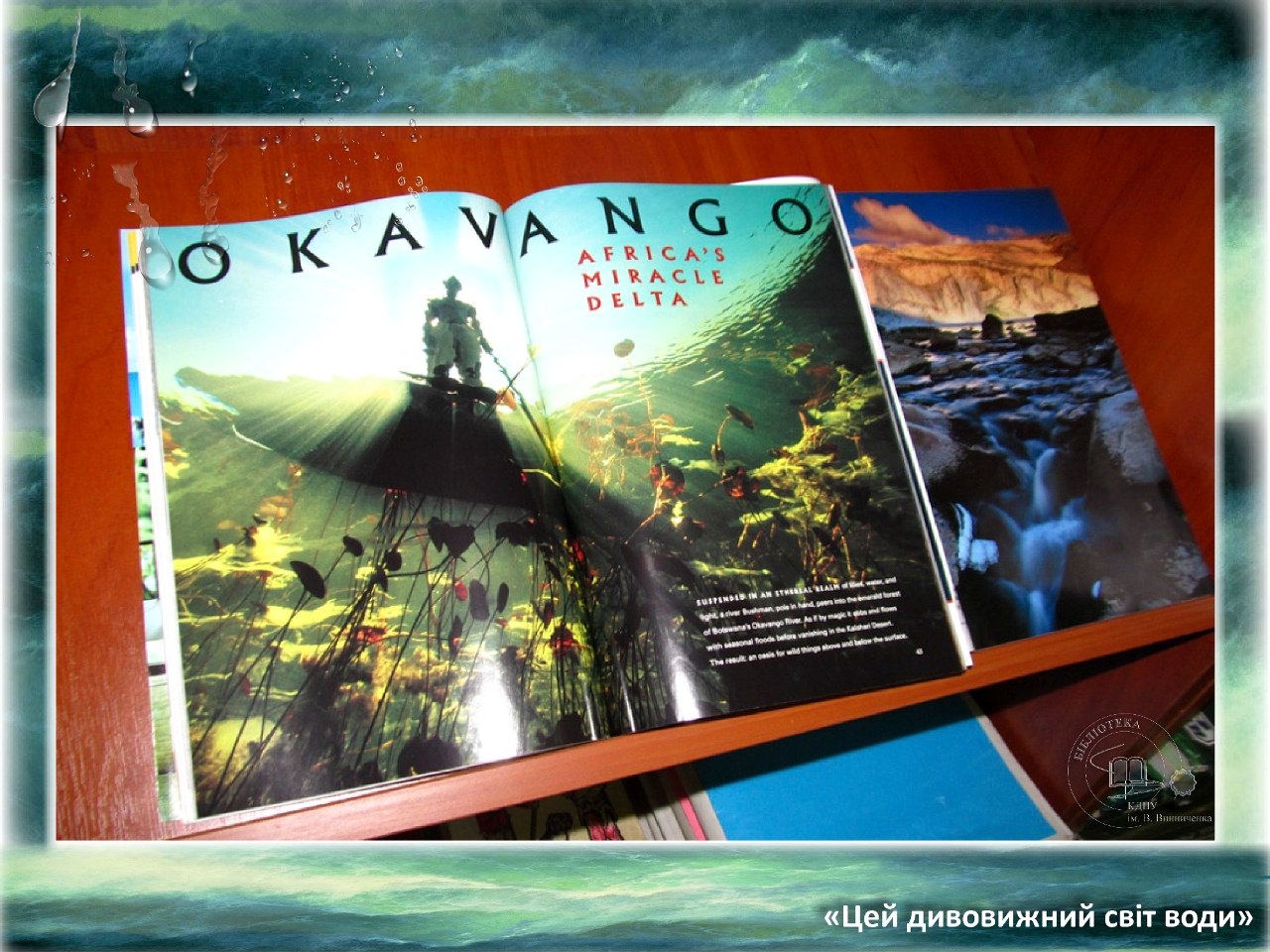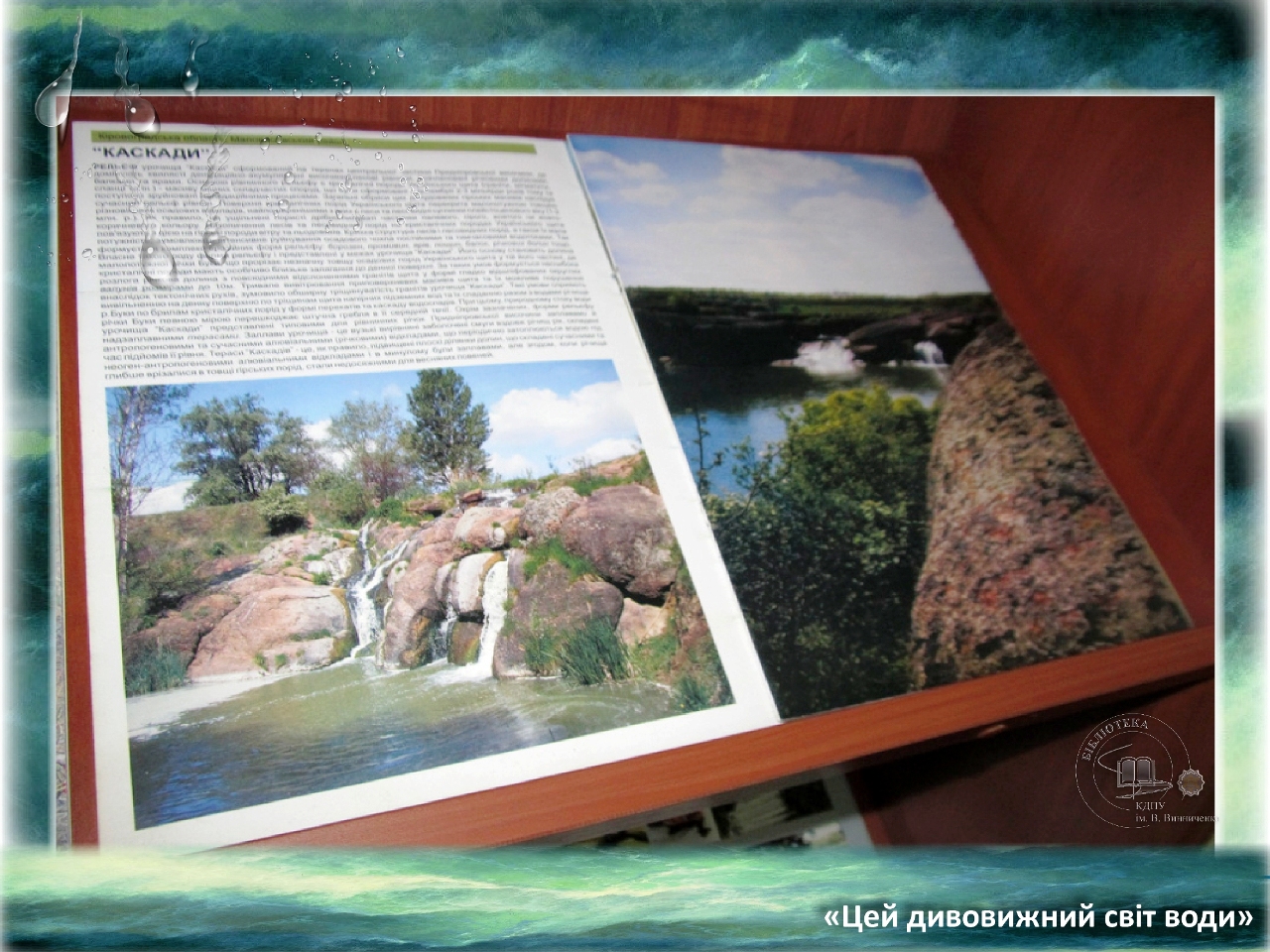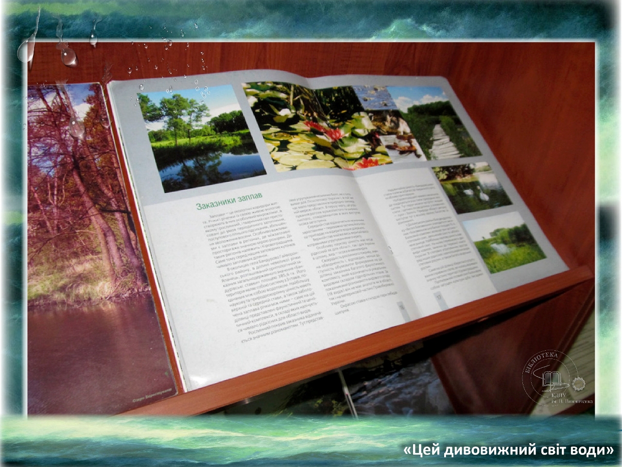 З книг, представлених на виставці, читач почерпне для себе різноманітну інформацію про надмірне споживання, забруднення і зменшення планетарних запасів прісної води, про походження і значення води, про екологічні, економічні, політичні, демографічні проблеми, породжені глобальною водною кризою, про загальний стан водоспоживання, водокористування й водного забезпечення в Україні.