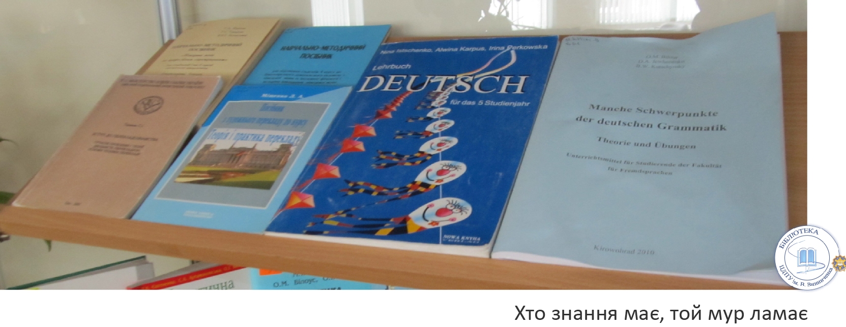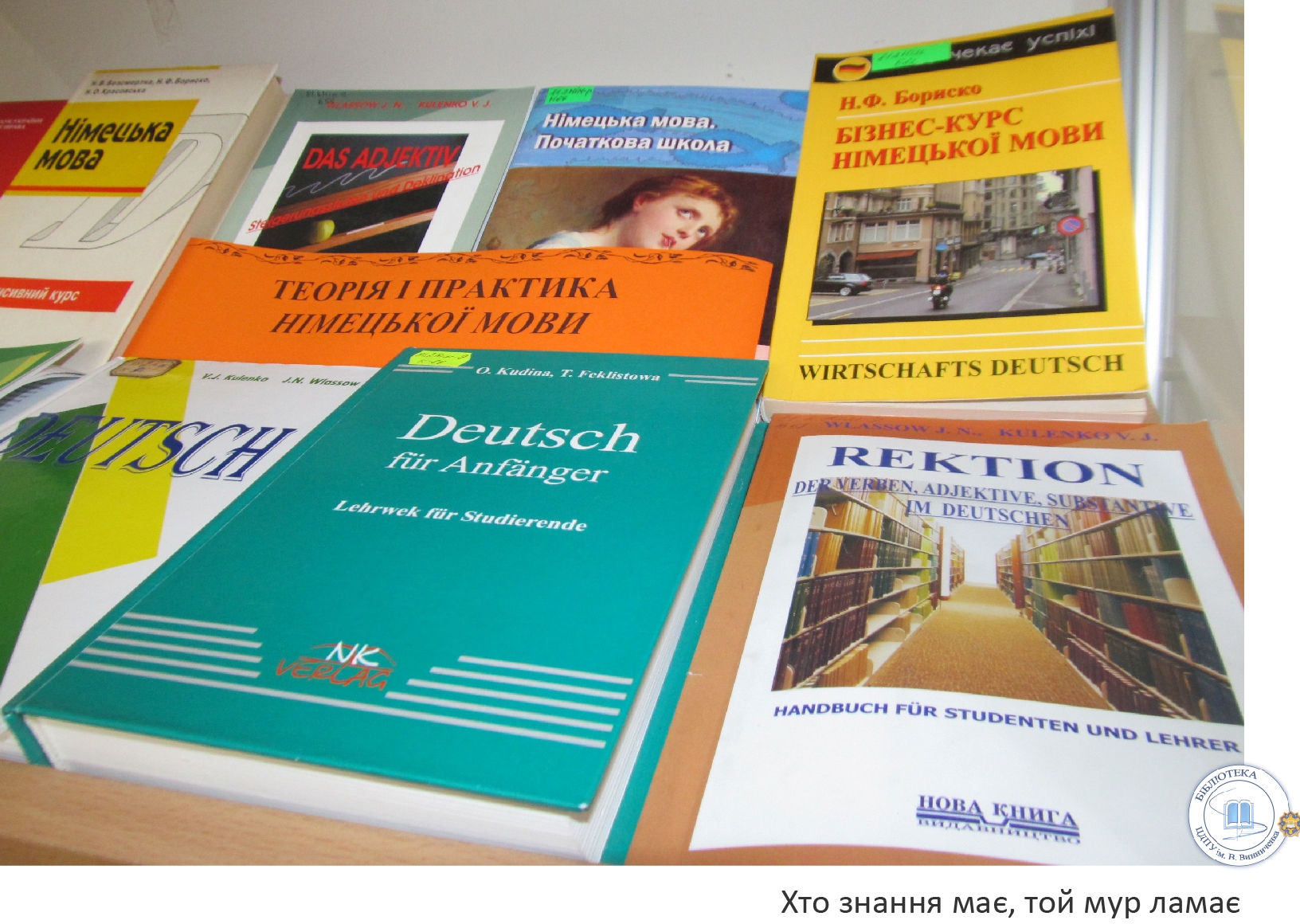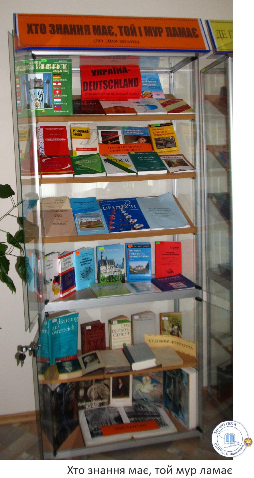 В рамках проведення Року вивчення німецької мови в Україні з 1 вересня до Дня знань в читальному залі філологічних дисциплін розгорнута тематична книжкова виставка «Україна – Deutschland».