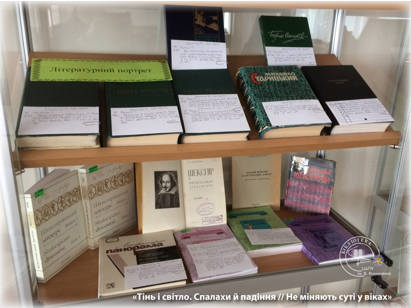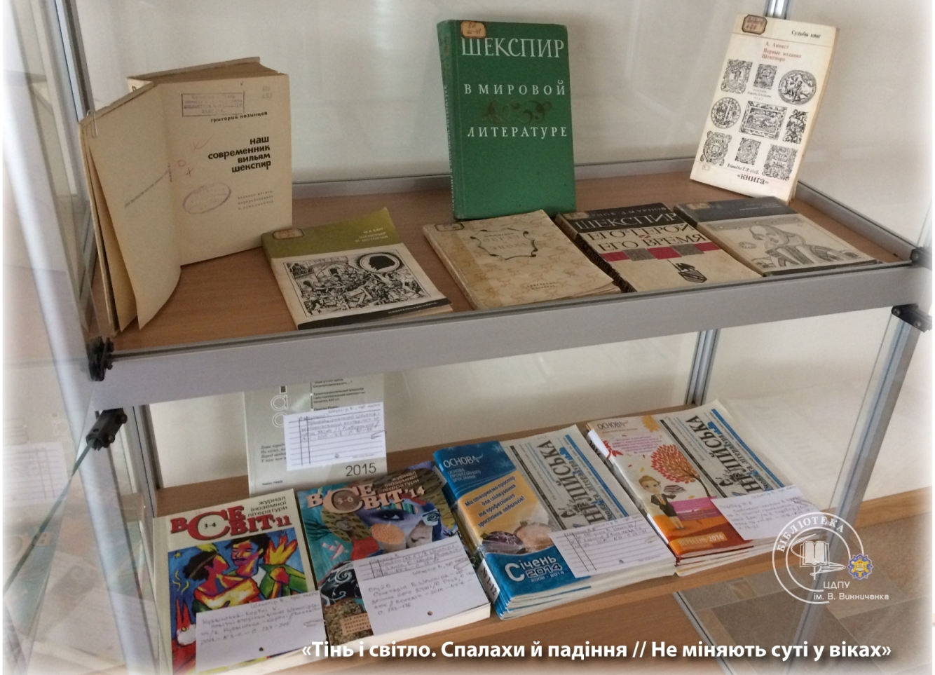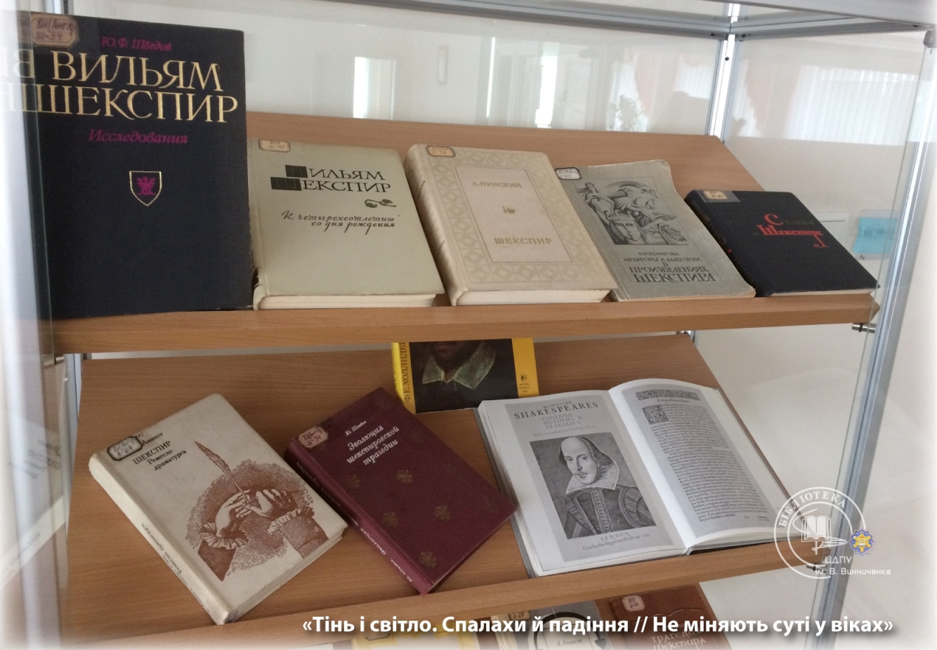 З нагоди проведення фіналу Всеукраїнського конкурсу читців сонетів В. Шекспіра в читальному залі для науковців з 17 квітня експонується велика книжкова виставка.