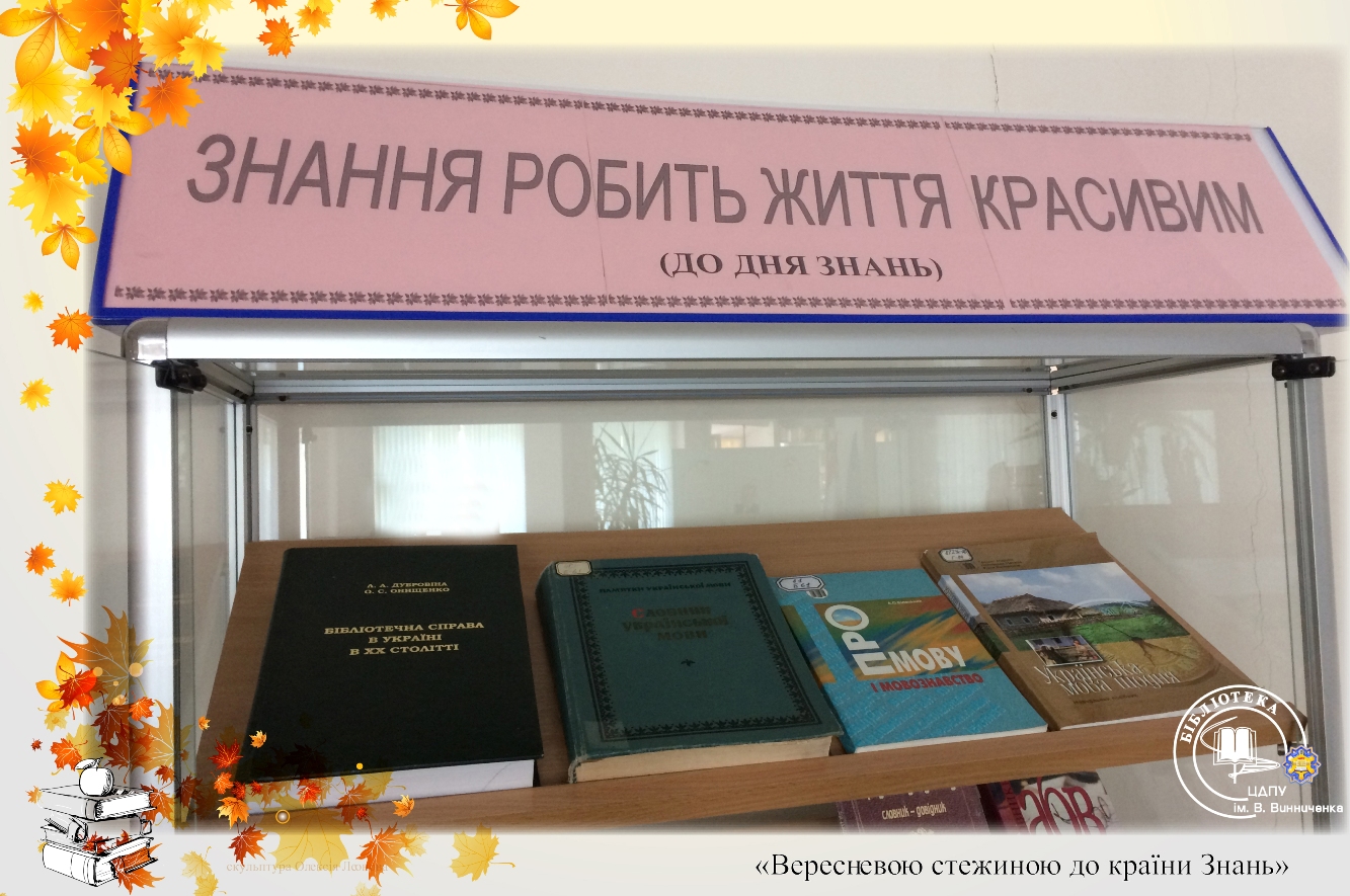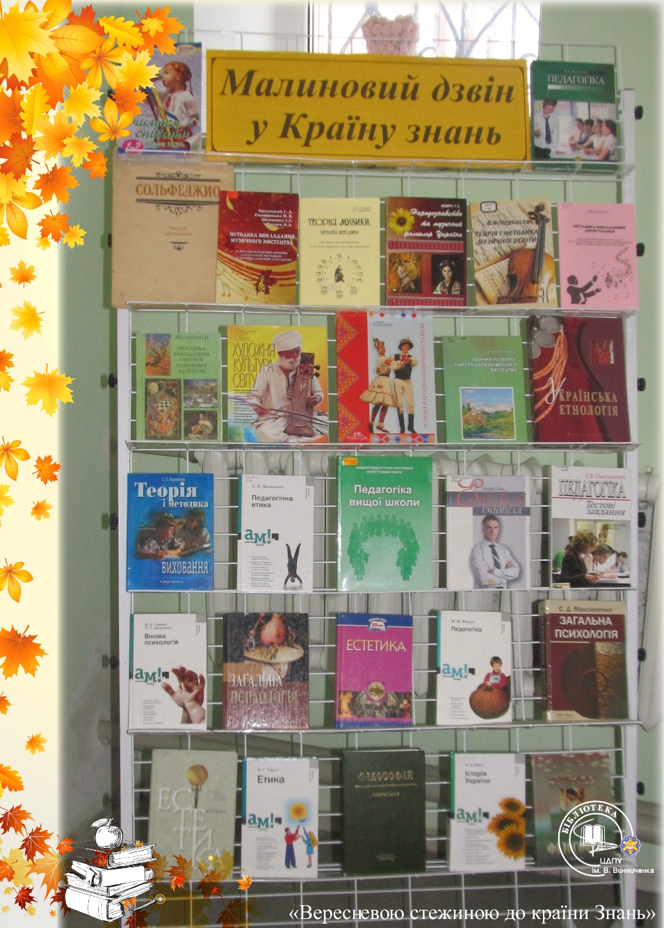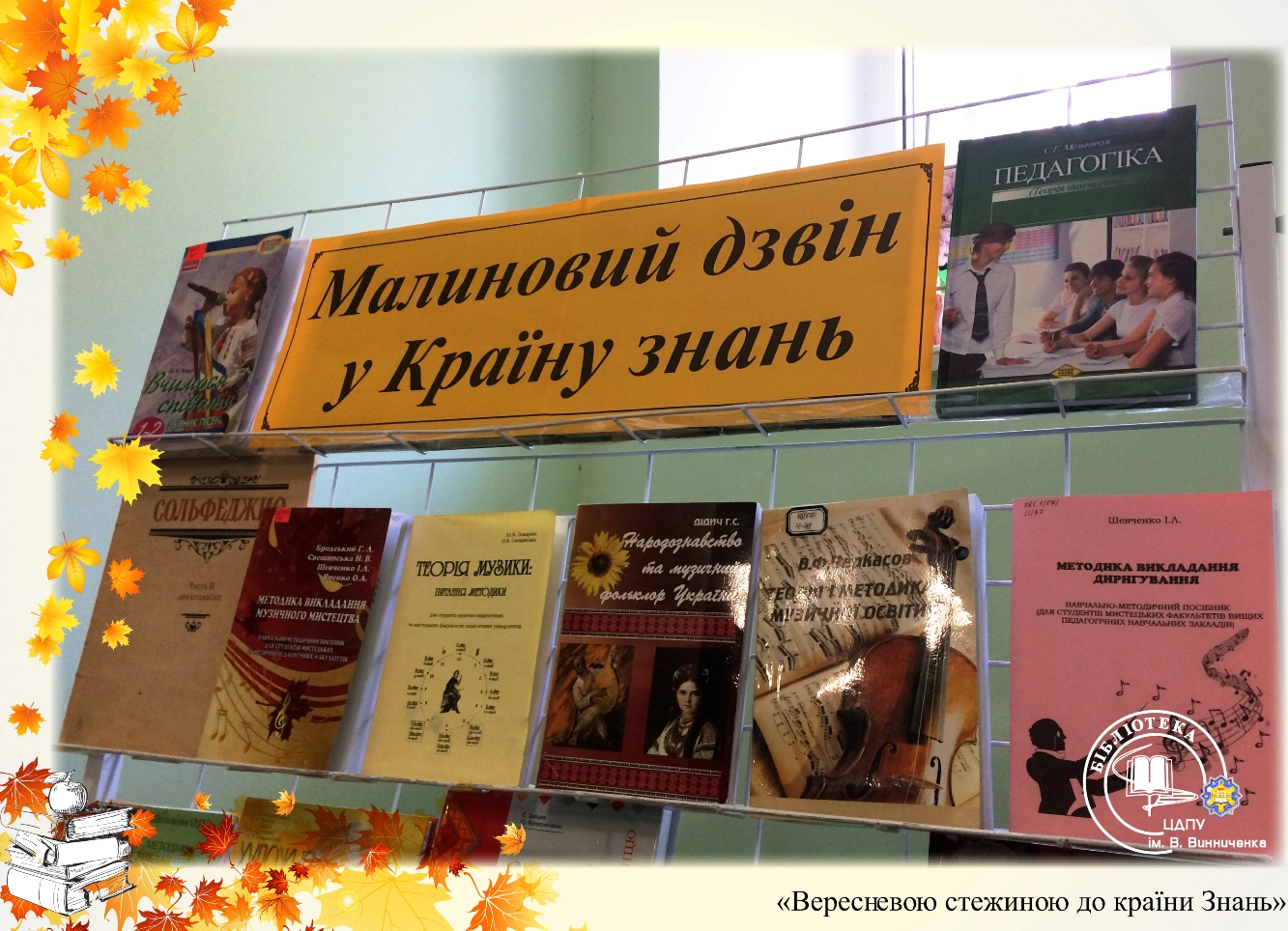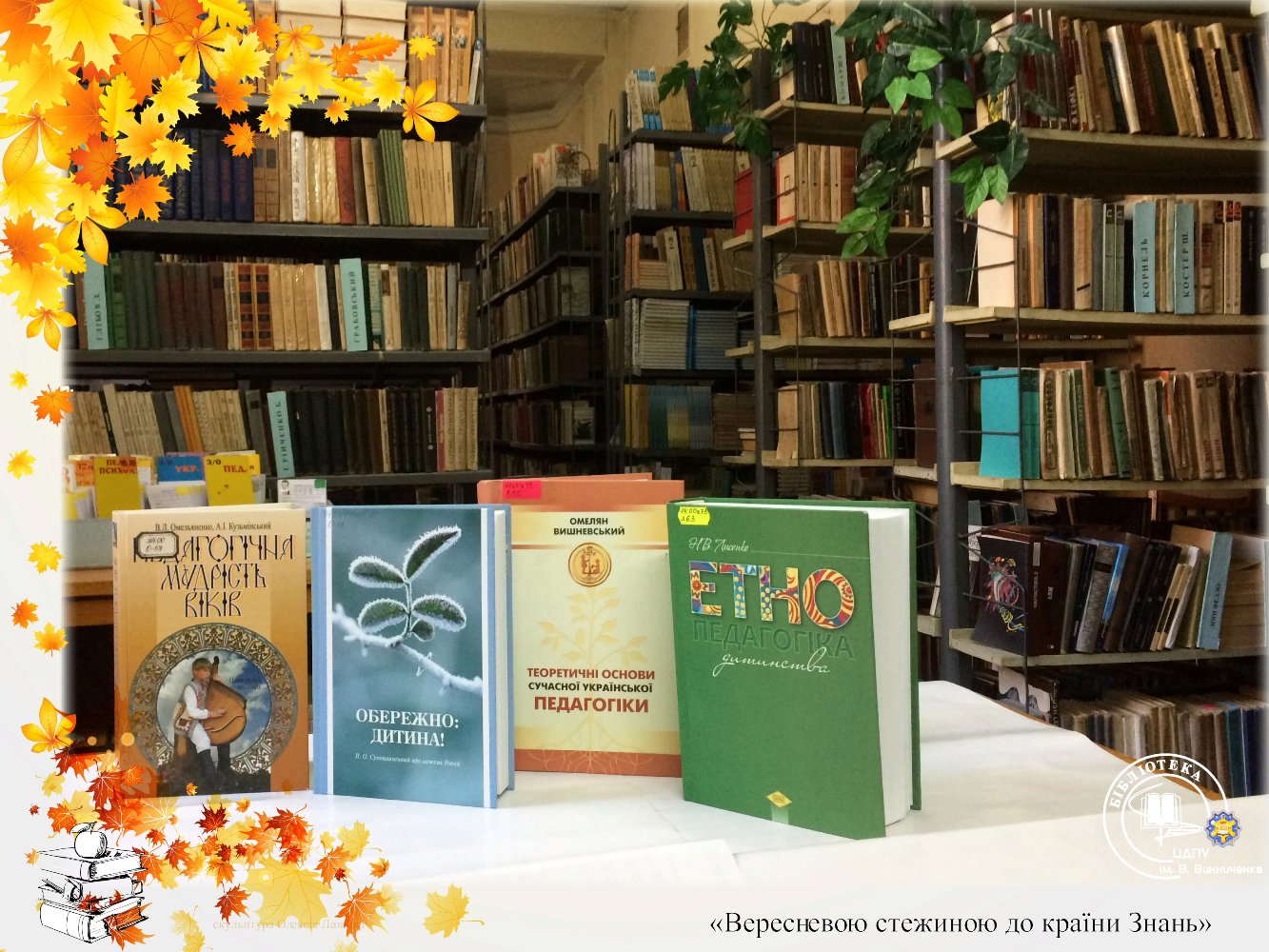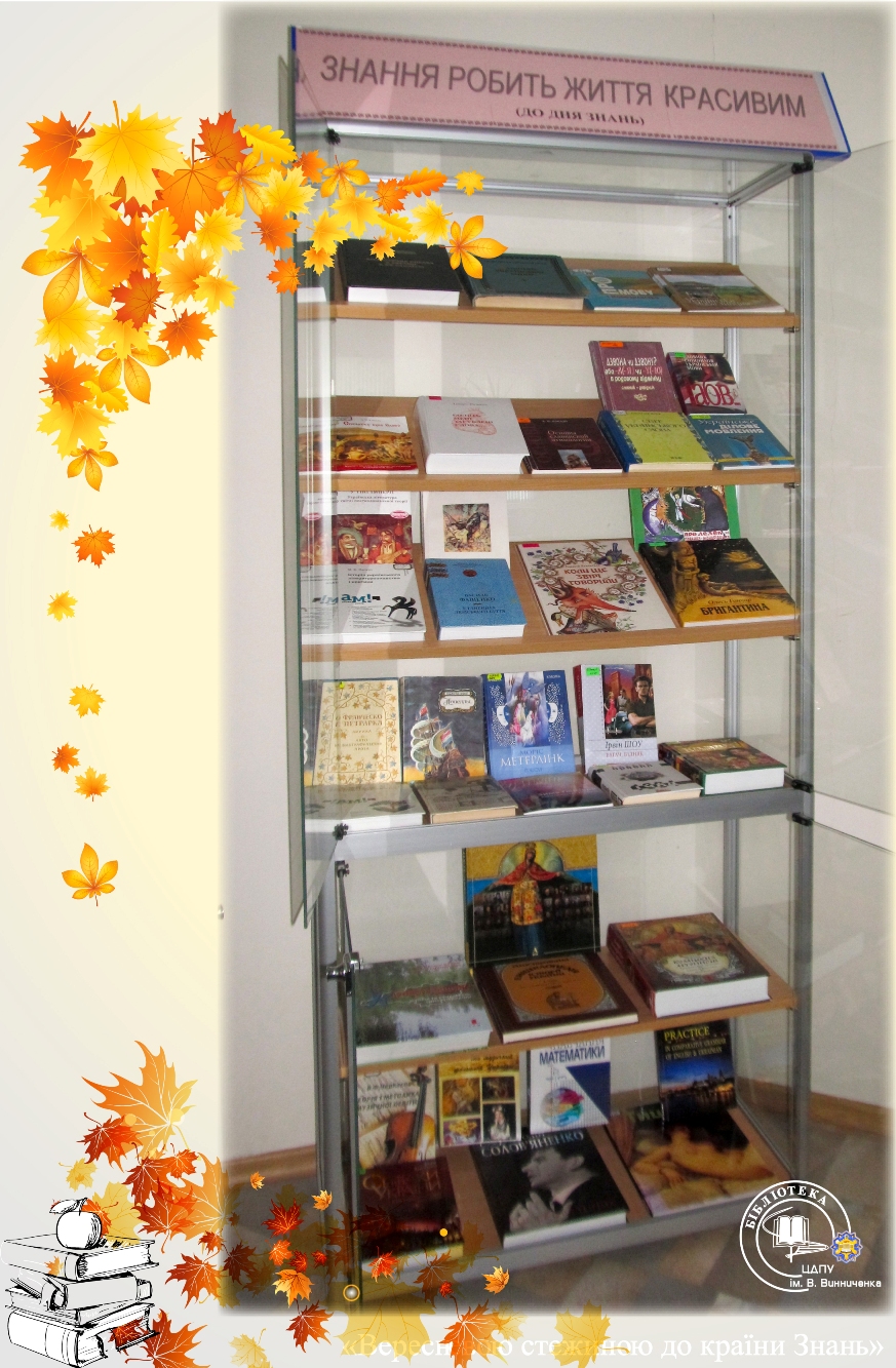 Також до Вашої уваги, шановні читачі, бібліотека пропонує ряд книжкових виставок, присвячених Дню Знань, матеріали першого уроку та нові методичні і навчальні посібники.