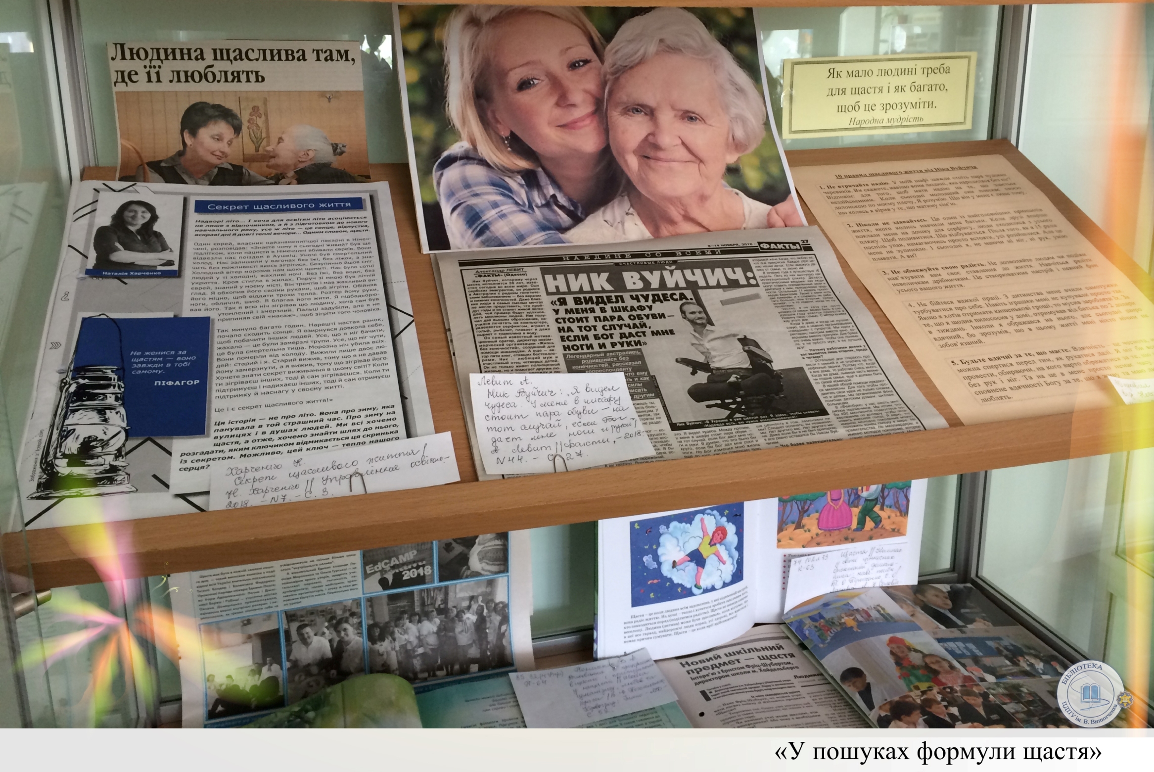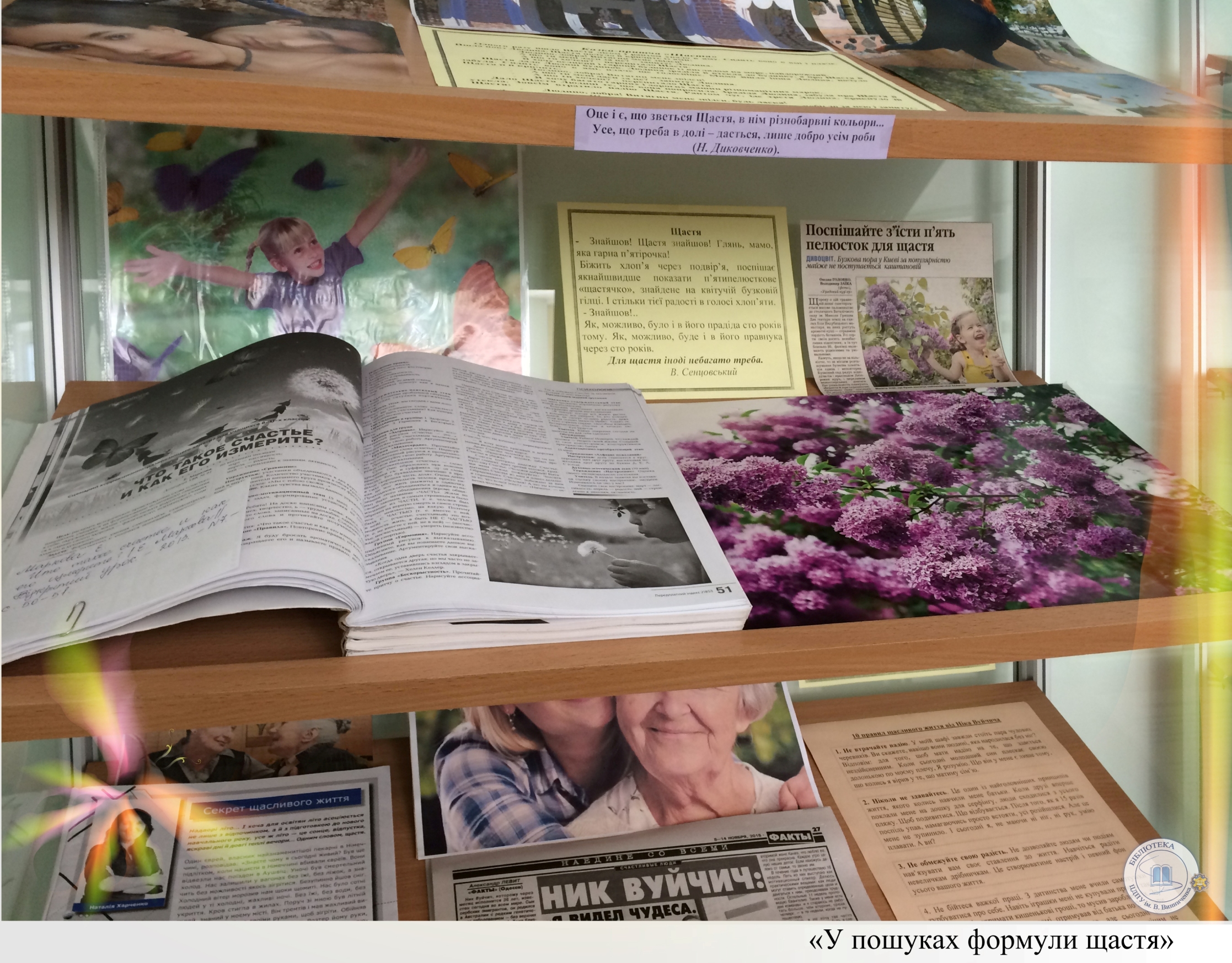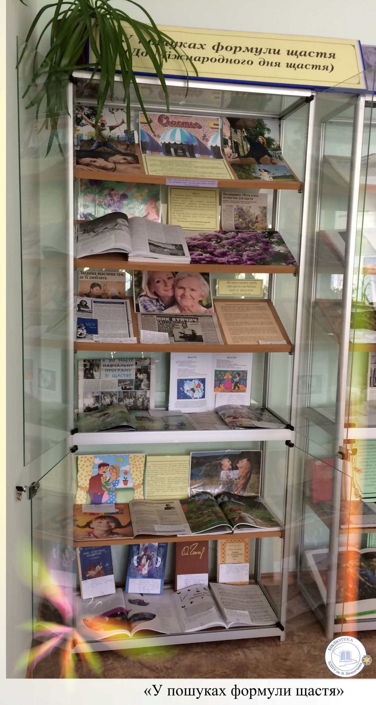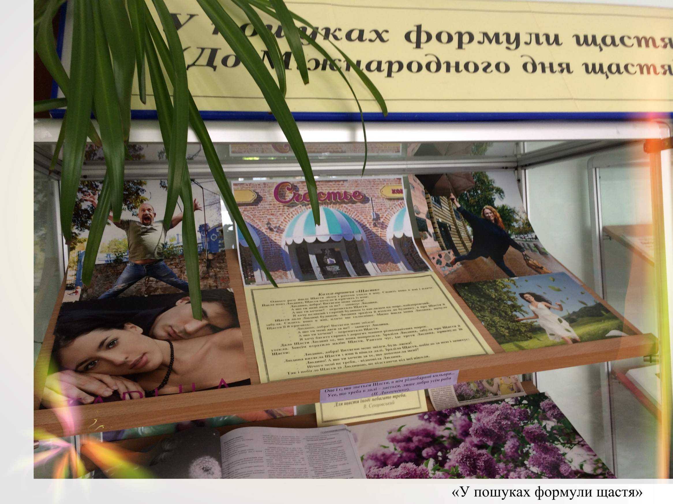 До Міжнародного дня щастя універсальний читальний зал пропонує переглянути виставку «У пошуках формули щастя», виведення якої є класичною філософською проблемою. Протягом життя ми не раз змінювали свої мрії. Однак усі ми мріємо бути просто щасливими. І дуже часто трапляється так, що у своїх невдачах, розчаруваннях, помилках ми звинувачуємо оточення або обставини, але тільки не себе, забуваючи про те, що наше щастя лише в наших руках. Про це нагадує притча.