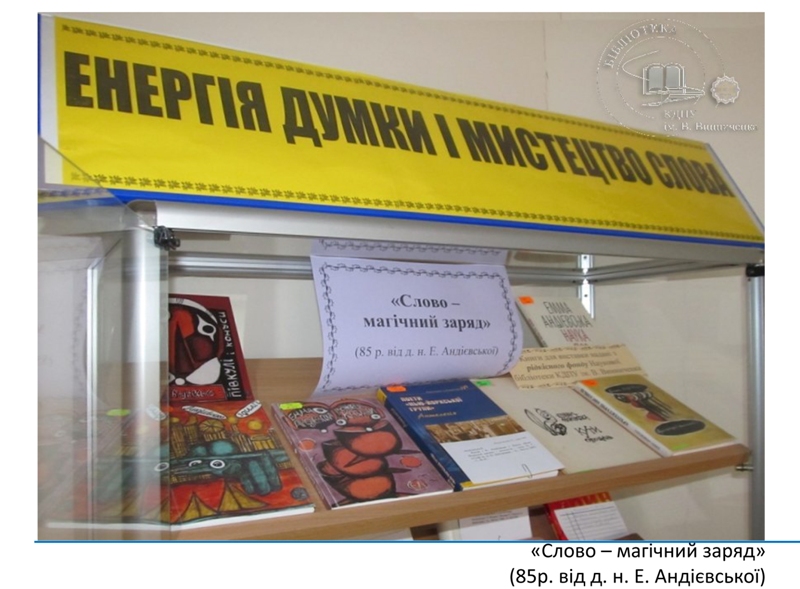 В читальному залі філологічних дисциплін бібліотеки університету, з 18 по 28 березня експонується виставка «Слово – магічний заряд», присвячена 85-й річниці від дня народження Емми Андієвської. Допитливий читач має змогу ознайомитися детальніше з відомою усьому світові поетесою, яка все життя прожила за межами України, але серцем і душею завжди була з нею.