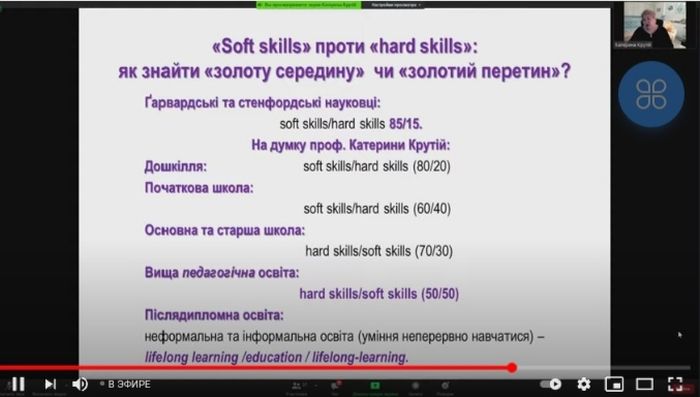 До конференції долучилася здобувачка першого (бакалаврського) рівня вищої освіти, 3 курсу навчання Кириленко Альона (спеціальність 012 Дошкільна освіта ОП Дошкільна освіта та Початкова освіта) із виступом на тему «Роль театральної діяльності у формуванні soft skills молодшого школяра». Науковий керівник: Т. О. Прибора кандидат педагогічних наук, доцент.