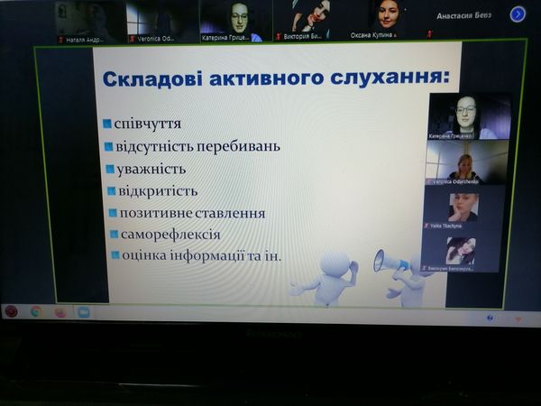 Гриценко К. А., студентка 3 курсу першого (бакалаврського) рівня вищої освіти «АКТИВНЕ СЛУХАННЯ ЯК ОСНОВА ПІДГОТОВКИ ДО ПЕДАГОГІЧНОЇ СПІВПРАЦІ УЧАСНИКІВ ОСВІТНЬОГО ПРОЦЕСУ». Науковий керівник – викладач Н. М. Андросова;