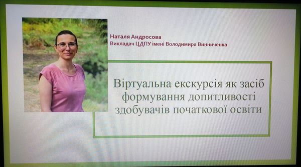Андросова Н. М., викладач (модератор секції) «ВІРТУАЛЬНА ЕКСКУРСІЯ ЯК ЗАСІБ ФОРМУВАННЯ ДОПИТЛИВОСТІ ЗДОБУВАЧІВ ПОЧАТКОВОЇ ОСВІТИ».