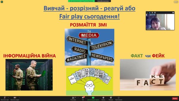 Інформаційне оточення сучасної людини вимагає стабільної та критичної реакції особистості. Саме з цією метою 17 лютого 2022 року відбувся віртуальний коворкінг «Вивчай – розрізняй – реагуй або Fair play сьогодення», який зібрав 50 учасників: студентів і викладачів факультету педагогіки, психології та мистецтв, гостей з інших закладів.