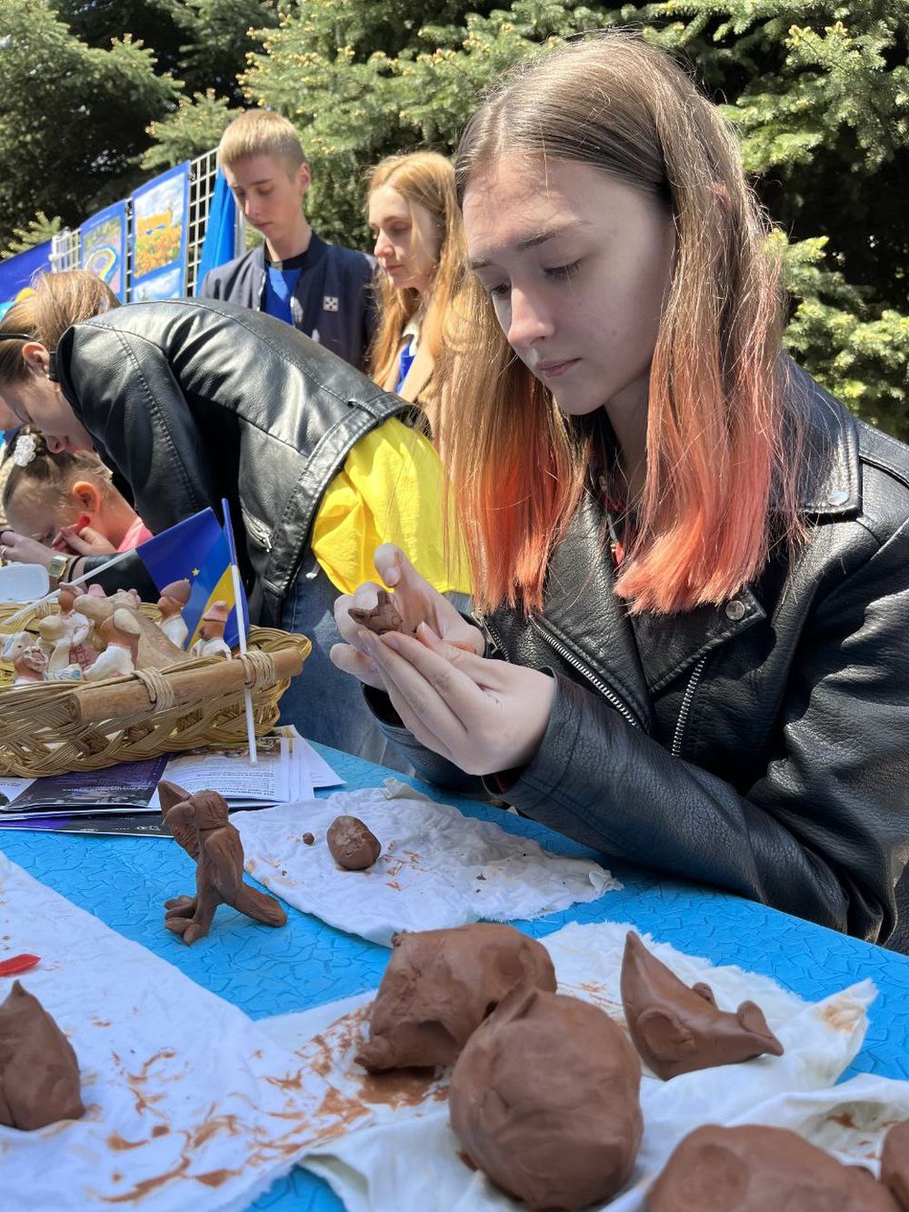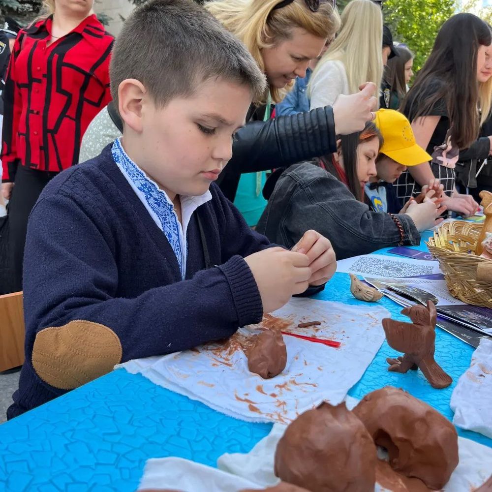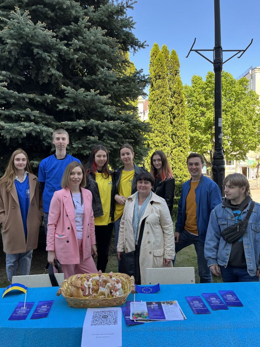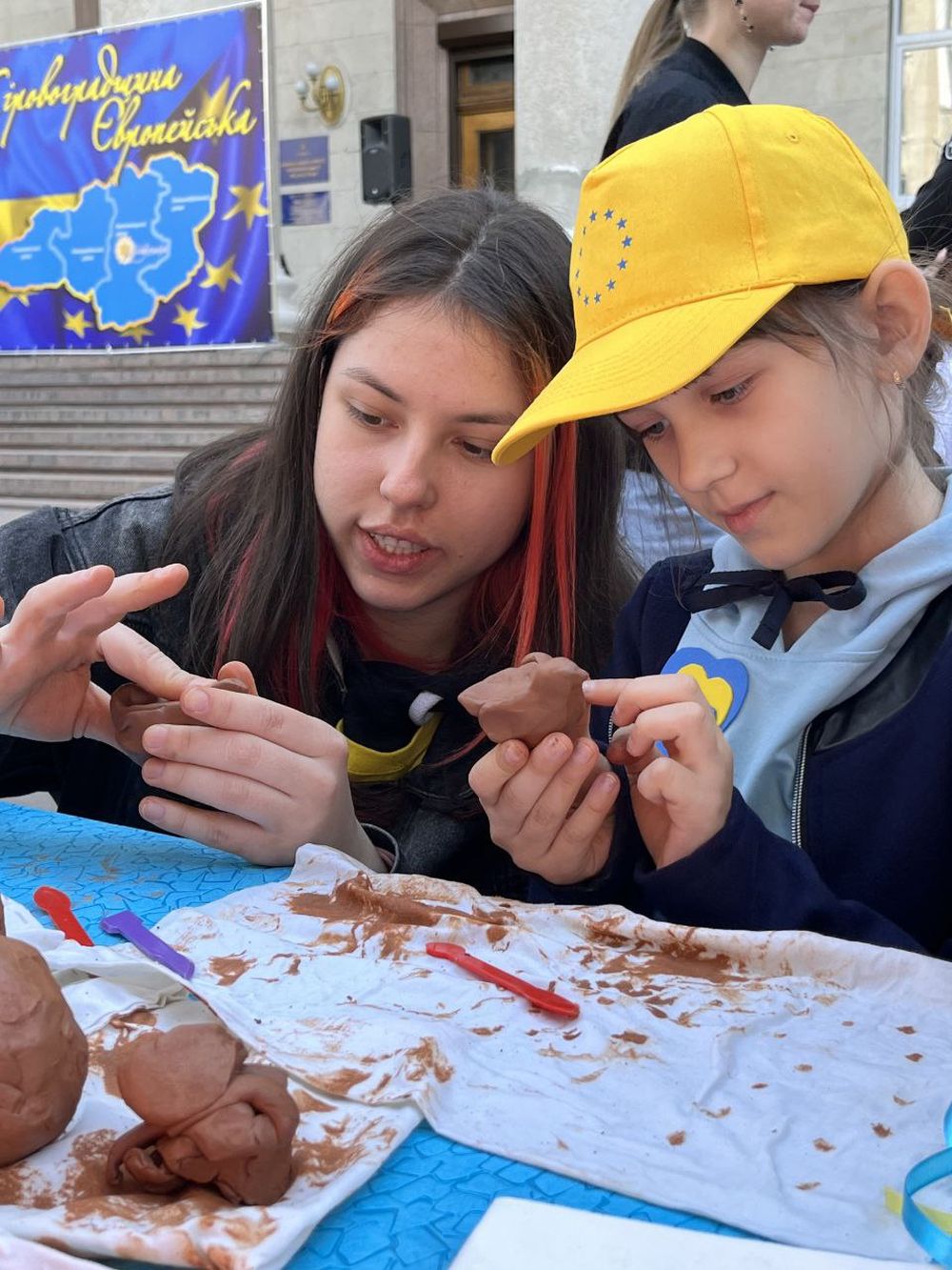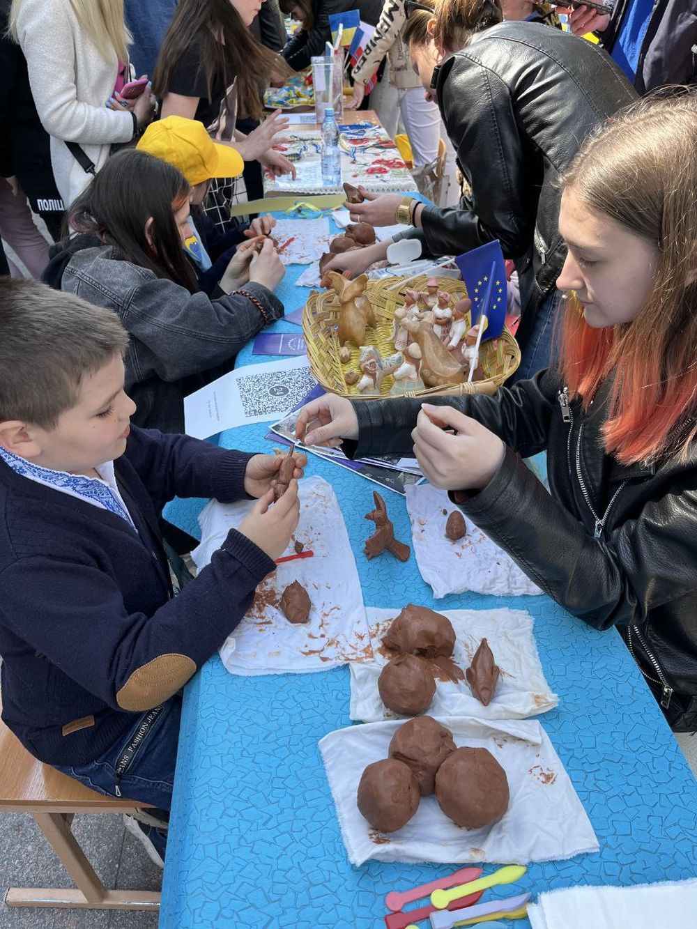 Завершилися заходи присвячені тижню Європи у Кропивницькому. 12 травня на площі біля міської ради відбувся благодійний ярмарок на користь ЗСУ та урочистості за участі творчих колективів Також студенти кафедри мистецької освіти під керівництвом Лариси Кулініч провели майстер-клас для дітей - Народна керамічна іграшка.