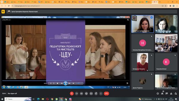 Завідувачка кафедри дошкільної та початкової освіти Котелянець Н. В. розповіла учасникам зустрічі про спеціальності факультету педагогіки, психології та мистецтв, майбутні професії та фахові кваліфікації.