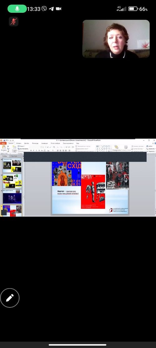 Професорка розкрила ключові категорії, мету та завдання травмоінформованого мистецтва, основні принципи цього підходу, а також стратегії подолання травми й перетворення її на позитивний досвід. Особливу увагу було приділено можливостям травмоінформованого мистецтва для подолання наслідків війни. Студенти із захопленням слухали про заходи, створені митцями Харківщини, які стали потужним інструментом ретравматизації та формування стійкості в дорослих і дітей Харківщини та всієї України.