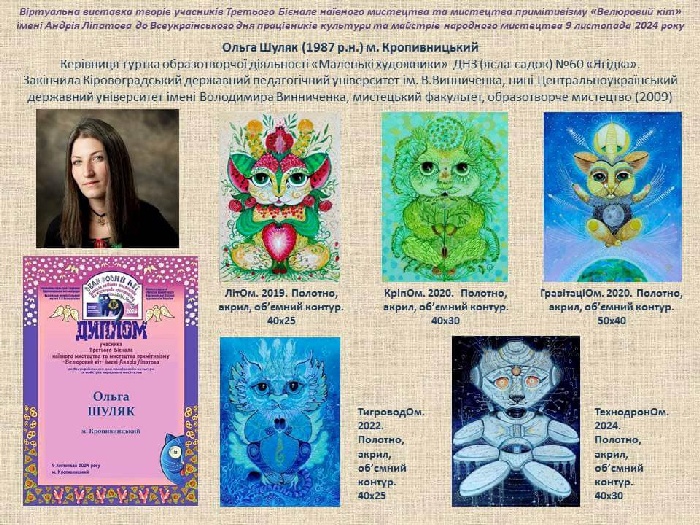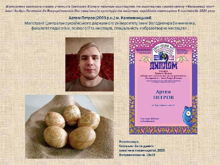 Фото робіт учасників можна переглянути на сайті організатора http://osmerkinmuseum.kr.ua/hmus/bien2024/b2024.html