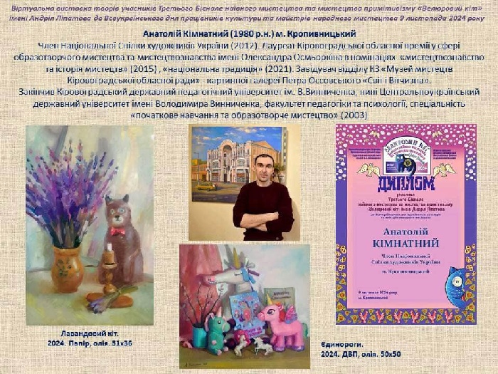 З нагоди Всеукраїнського дня працівників культури та майстрів народного мистецтва, що відзначався 9 листопада, художньо-меморіальний музей Олександра Осмьоркіна вже втретє влаштував бієнале наївного мистецтва та мистецтва примітивізму «Велюровий кіт» імені Андрія Ліпатова.