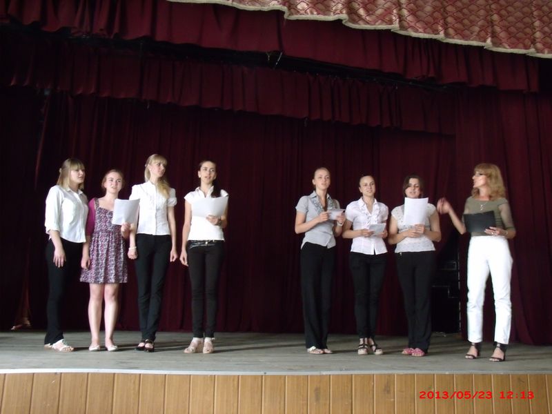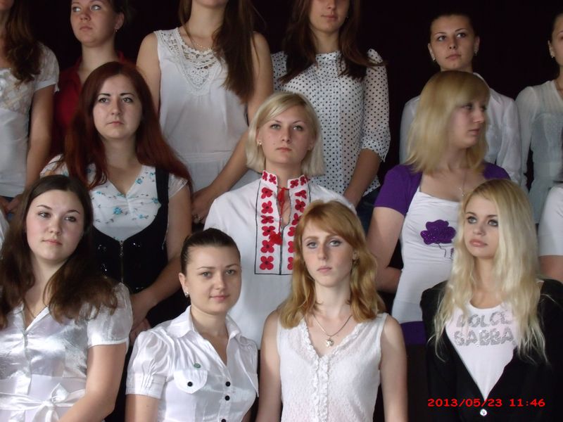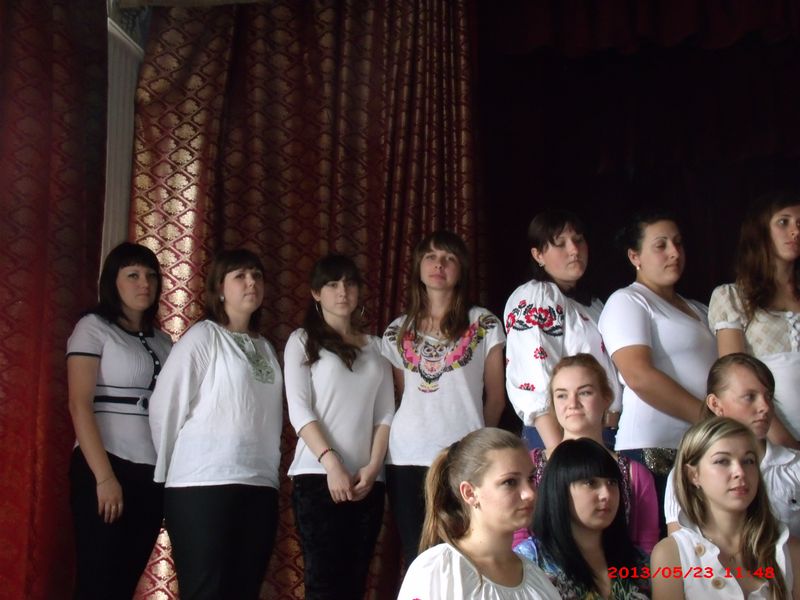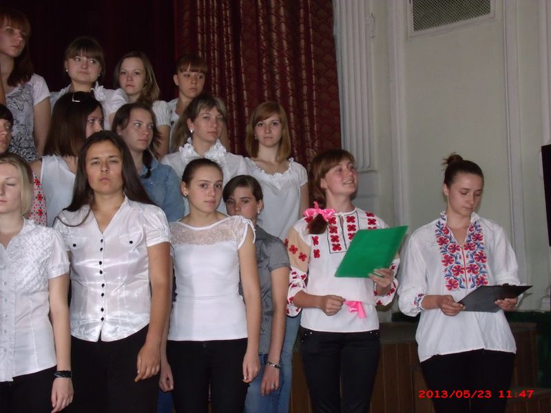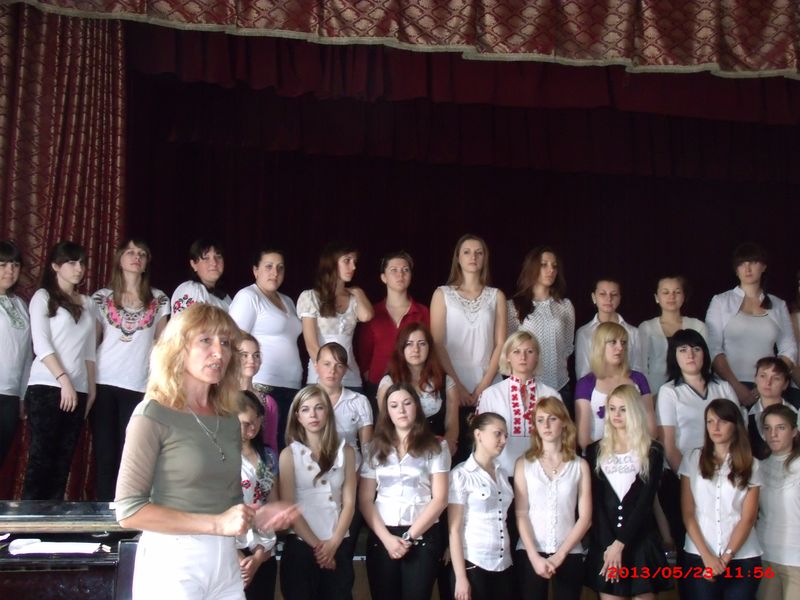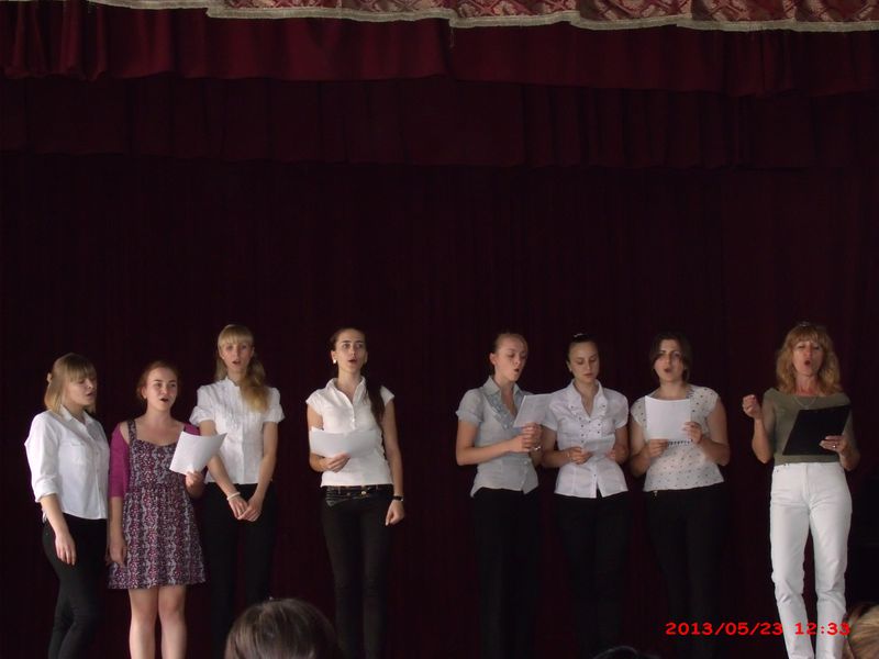 Вокальна група виконала пісні: «Ой, лопнув обруч», «Заспіваймо пісню веселеньку», «Ой, за геєм, гаєм»,»Верба ясна, вербиченька». Тріо виконало пісню «Місяць на небі». У виконанні Брейткрейц Оксани (гр. 28) пролунала пісня «Ой, у лузі по долині». Мосьпан Олеся (гр. 21) виконала пісню «Мамина сорочка».