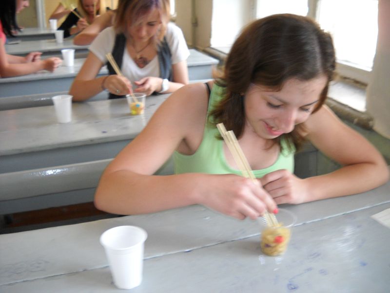 Посол Японії здивував національними особливостями кухні та навчив як «зірково» їсти за допомогою паличок. Учасникам було запропоновано дістати зірки-орігами із однієї посудини з макаронами і перекласти в іншу – пусту. Гості виявили таку спритність та старанність, за яку кожен був винагороджений сувенірним жетончиком.