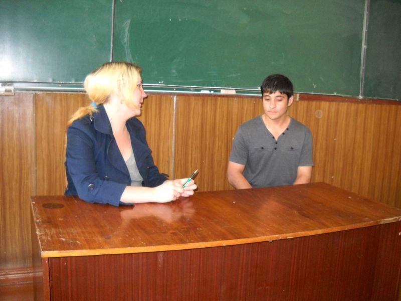 Отож, першим екзаменом було завдання не з простих. Екзаменатор-казкар вирішила перевірити наскільки ж гарно, на практиці, засвоїли під час навчання, студенти матеріал. І завданням конкурсу «Хто ж цікавіше» було якомога яскравіше провести зацікавлення до казки-гри. Студенти проявили неабияку артистичність та діяли всі разом.