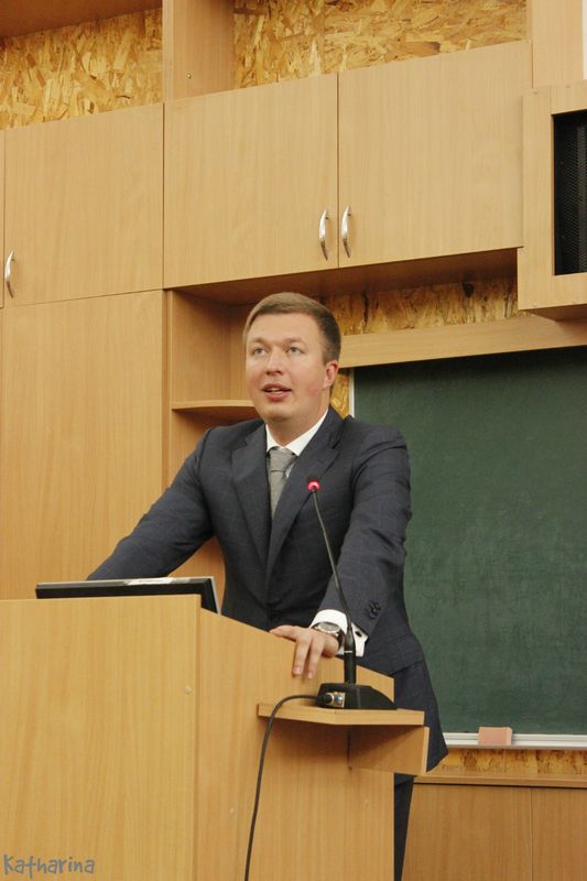 Лекцію відвідав доктор філологічних наук, професор, ректор нашого університету О. А. Семенюк. Олег Анатолійович звернувся до студентів із закликом до активної навчальної та суспільної діяльності, докласти зусиль до оволодіння системою фундаментальних професійних знань та не залишатися осторонь у вирішенні важливих питань для міста та області.