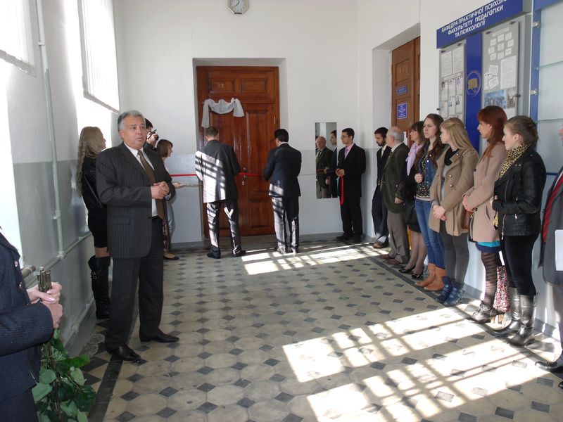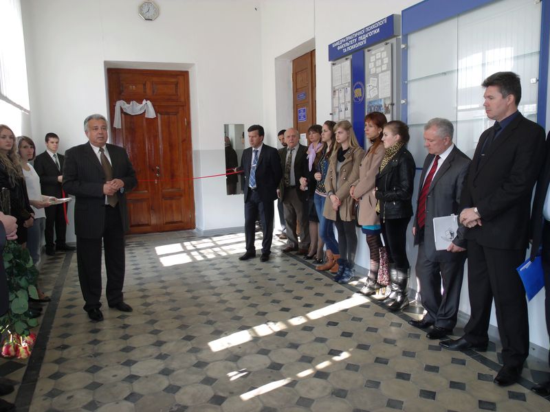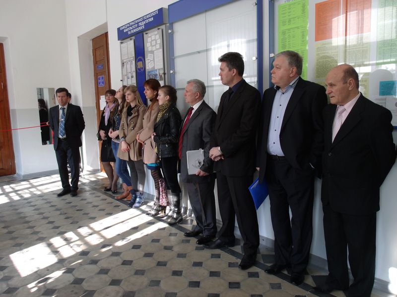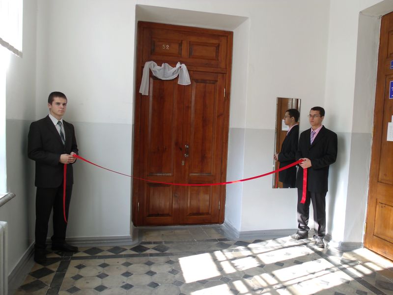 Червону стрічку до аудиторії № 52 перерізали ректор університету, професор Семенюк О. А. та син Віталія Івановича Завіна Р. В.