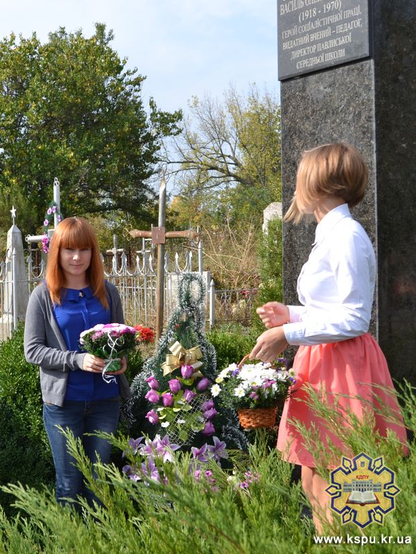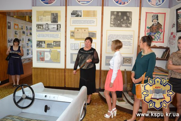 Після приїзду до с.м.т. Павлиш студенти вшанували пам’ять видатного педагога покладанням квітів до пам’ятника. Директор музею Ткаченко Зоя Юріївна ознайомила студентів з педагогічною частиною музею та розповіла про життєвий шлях і педагогічну діяльність педагога. Велике враження на відвідувачів справила меморіальна квартира Василя Олександровича з його величезною бібліотекою. Оглядаючи робочий кабінет вченого, студенти почули цікаву розповідь про роботу Сухомлинського як директора школи, який починав свій робочий день о 4-й годині ранку, працюючи над рукописами своїх статей та книжок. А о 8-й годині вже стояв на ганку школи, зустрічаючи дітей, котрі прийшли на заняття.