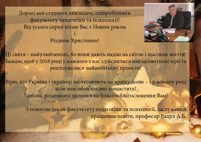 Від усього серця вітаю Вас з Новим роком і Різдвом Христовим!