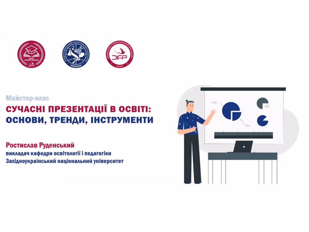11 березня 2025 року в межах діяльності гуртків зв спеціальностей 012 Дошкільна освіта, 013 Початкова освіта студентським науковим товариством «Від гри – до науки» кафедри дошкільної освіти Маріупольського державного університету був проведений на вебінар на тему: «Сучасні презентації в освіті: основи, тренди, інструменти». Модератором була доктор педагогічних наук, професор Крутій Катерина Леонідівна. Лектор – викладач кафедри освітології і педагогіки Західноукраїнського національного університету Ростислав Руденський.