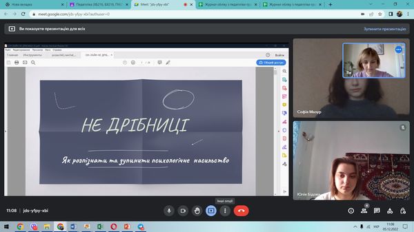 Студенти факультету педагогіки, психології та мистецтв та доцентка кафедри дошкільної та початкової освіти Андросова Н.М., доцентка кафедри педагогіки та спеціальної освіти Кравцової Т.О., старший викладач кафедри психології та соціальної роботи Руденко Ю.Ю. з 25.11.2022 року активно долучилися до всеукраїнської кампанії «16 днів проти насильства» з метою привернення уваги до проблем подолання насильства в сім’ях, жорстокого поводження з дітьми, протидії торгівлі людьми та захисту прав жінок.