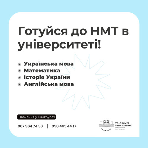 - Підготовка до всіх предметів НМТ (за вільним вибором абітурієнта). А також до творчих конкурсів з фізичної культури; хореографії; образотворчого мистецтва.
