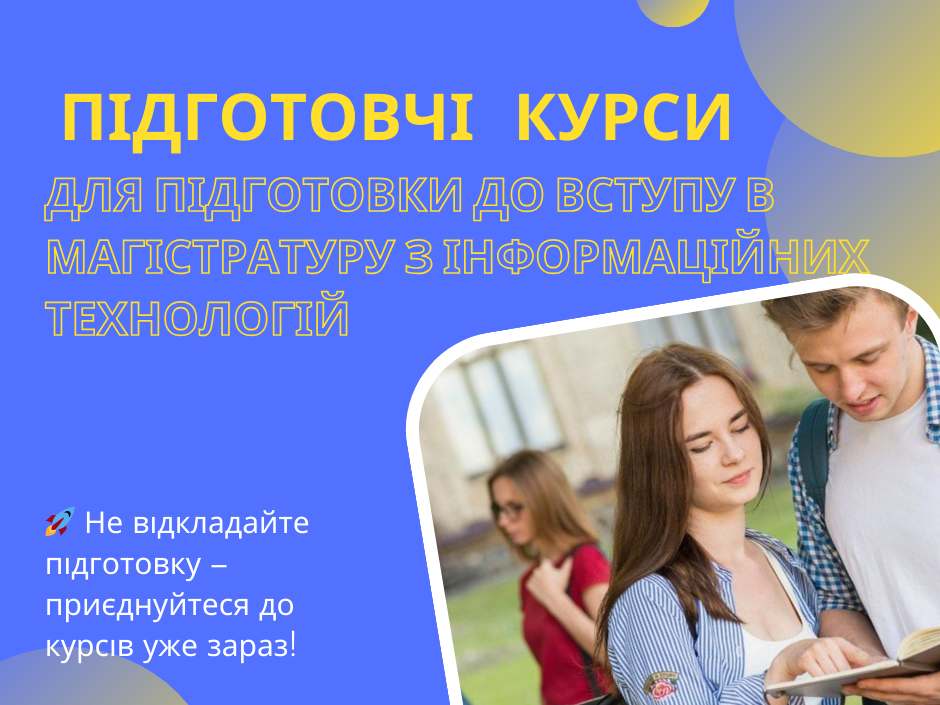 Для вступу до магістратури зі спеціальностей галузі F ( ІТ) обов'язково потрібно проходити Єдине Фахове Вступне Випробування (ЄФВВ) з інформаційних технологій. Пропонуємо курси підготовки до ЄФВВ з інформаційних технологій!