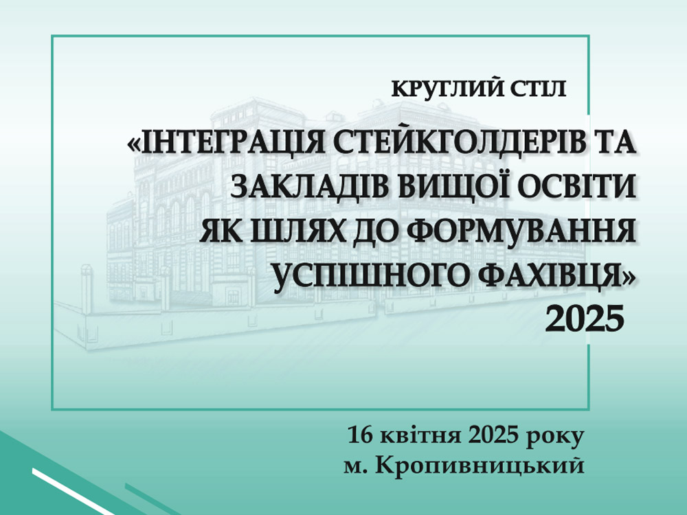 16 квітня 2025 року на факультеті української філології, іноземних мов та соціальних комунікацій о 12:30 год. відбудеться круглий стіл на тему «ІНТЕГРАЦІЯ СТЕЙКГОЛДЕРІВ ТА ЗАКЛАДІВ ВИЩОЇ ОСВІТИ ЯК ШЛЯХ ДО ФОРМУВАННЯ УСПІШНОГО ФАХІВЦЯ».