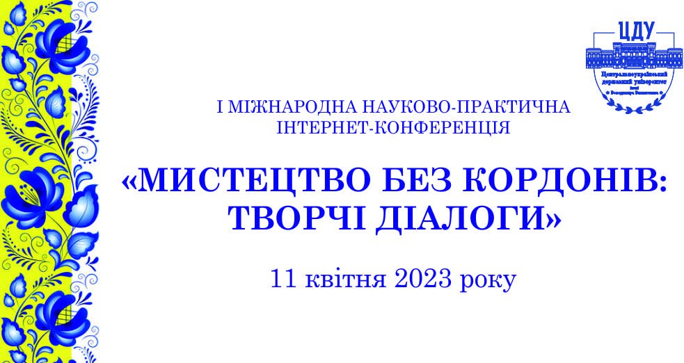 Запрошуємо науковців, педагогів, методистів, учителів мистецьких дисциплін, досвідчених викладачів-практиків, студентів, магістрантів, аспірантів, стейкхолдерів, науковців-початківців взяти участь у роботі І Міжнародної науково-практичної інтернет-конференції «Мистецтво без кордонів: творчі діалоги», що відбудеться в рамках проведення міжнародного багатожанрового конкурсу-фестивалю «Співограй» 11 квітня 2023 року.