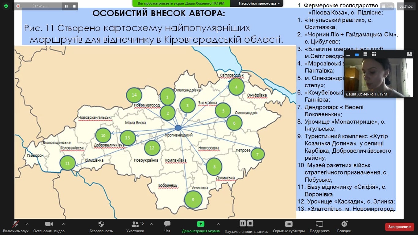 Комісія у складі д.г.н., доц. Шевчука С.М. (голова ЕК), д.г.н., проф. Кривульченка А.І., к.г.н., доц. Семенюк Л.Л., к.геол.-мін.н., доц. Вовка В.М., провела державні екзамени та відкриті захисти кваліфікаційних робіт. Також до роботи екзаменаційної комісії долучилися в якості стейкхолдерів директор КЗ КО Центр туризму, краєзнавства та екскурсій учнівської молоді Лісота А.А. та завідувач науково-методичної лабораторії природничо-математичних дисциплін КЗ КОІППО ім.В.Сухомлинського Хлань Л.М.