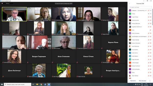 Формат зустрічі – дистанційний, з використанням сервісу конференц-зв’язку Zoom. У трьох 40 хвилинних сеансах проведення конференції взяли участь 100 учасників – максимальна кількість, яку дозволяє безкоштовна версія Zoom.