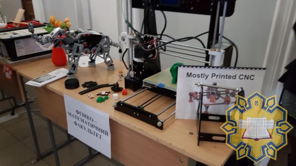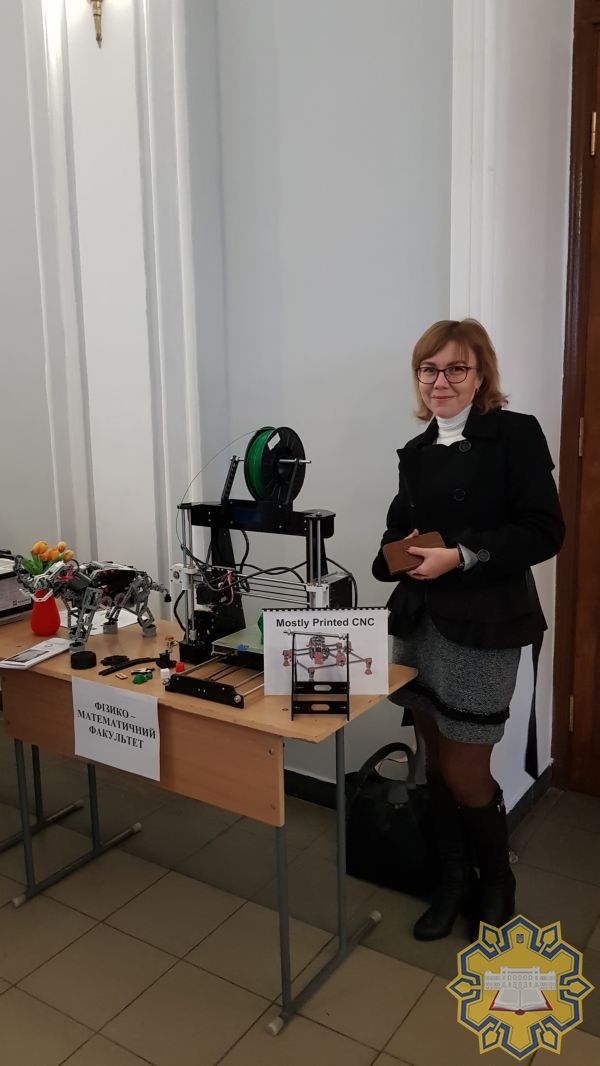 Всіх учасників МАН привітали проректор з наукової роботи С.П. Михида та декани факультетів. Учні та їхні вчителі мали змогу ознайомитися з основними науково-практичними здобутками працівників університету. Зокрема, і напрацювання гуртка «Основи автоматизованих систем і робототехніки» презентувала голова Ради молодих вчених ЦДПУ, к.пед.н., доц. О.М. Трифонова. Гурток функціонує на фізико-математичному факультеті з вересня 2018 року й об’єднує всіх студентів, які цікавляться робототехнікою. Тож на заході були презентовані вироби студентів, що виготовлені на 3D принтері, слоненя ТіНі16 зібране на базі конструктора Lego та квадрокоптер. Найбільший інтерес учасників привернуло слоненя ТіНі16, привітатися за хобот з яким було багато бажаючих.