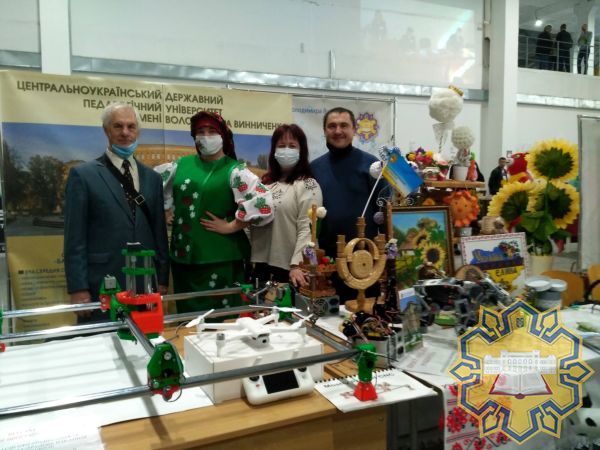 Цього року Центральноукраїнський державний педагогічний університет імені Володимира Винниченка традиційно взяв участь у Міжнародній агропромисловій виставці з польовою демонстрацією техніки AGROEXPO-2020, яка пройшла з 30 вересня по 3 жовтня. В експозиції університету були представлені і результати діяльності наукового гуртка студентів «Основи автоматизованих систем і робототехніки» (керівники: д.пед.н., проф. М.І.Садовий та члени Ради молодих вчених д.пед.н., доц. О.М.Трифонова та к.пед.н. Д.В.Соменко). Серед основних експонатів були: