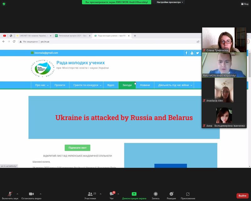 Значна увага була приділена обговоренню діяльності Рад молодих вчених під час військових дій.