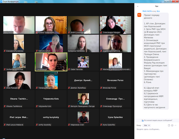 07 вересня 2022 р. у відбулось чергове засідання Ради молодих учених при Міністерстві освіти і науки України.