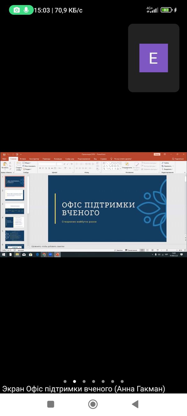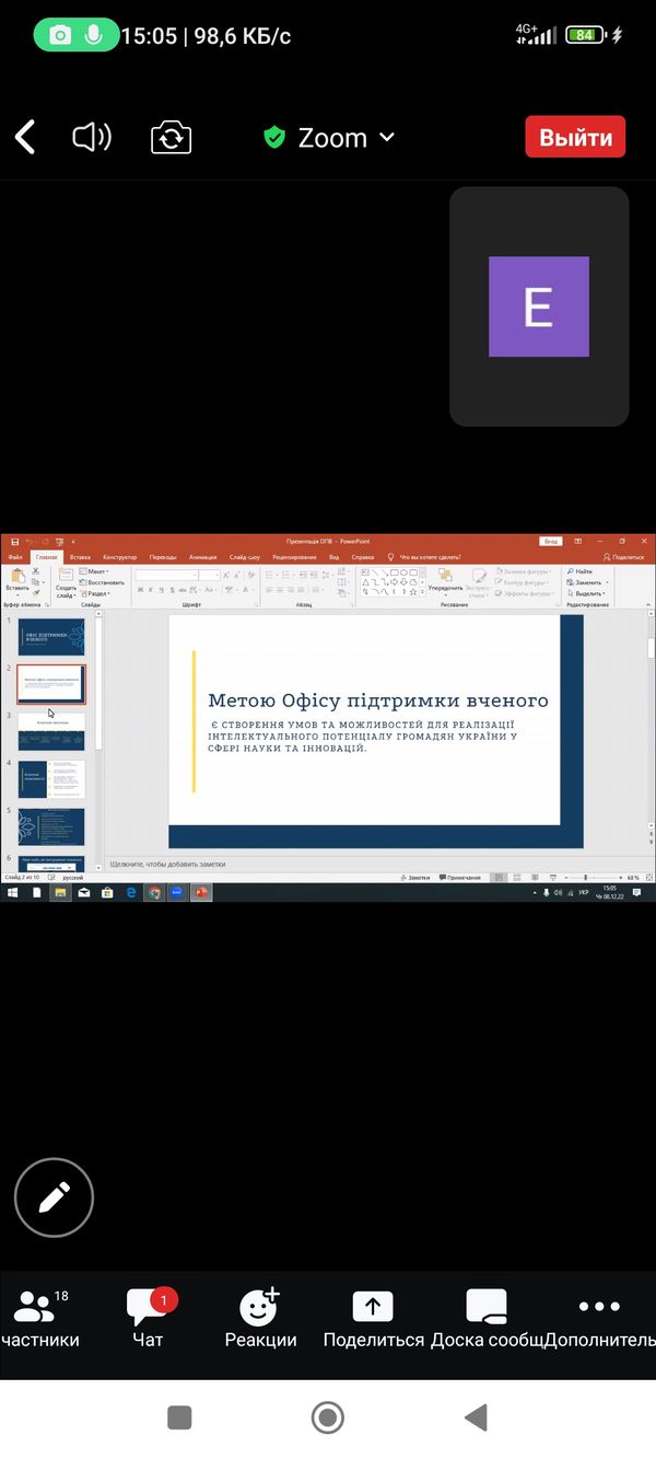 Представниками Офісу підтримки вченого був презентований їхній сайт(https://sso.org.ua/), як основний інформаційний ресурс офісу.