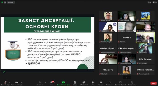 Пані Світлана Бережна чітко та структуровано розповіла зацікавленим учасникам як вчасно підготувати та захистити дисертацію, як уникнути можливих проблем.