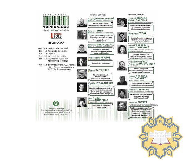 Молоді вчені Центральноукраїнського державного педагогічного університету імені Володимира Вонниченка не залишились осторонь цієї проблеми. Зокрема, 1 березня 2018 року к.геогр.н. Ю.Ю.Сільченко стала активним учасником круглого столу присвяченого проблемі збереження Чорного лісу та виступила з доповіддю «Лісопромисловий комплекс як складова економіки Кіровоградської області». Систематично ведуться спостереження за унікальною рослинність Чорного лісу к.пед.н., доц. О.М.Трифоновою, яка долучає до цієї проблеми й учнів місцевої школи.