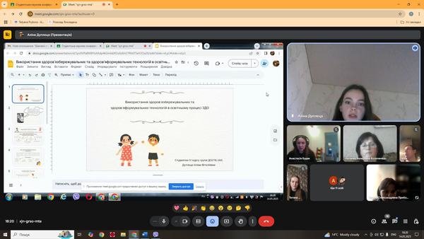 У межах проведення щорічної студентської наукової конференції в закладі вищої освіти відбулося засідання секції за спеціальністю 012 «Дошкільна освіта», яка об’єднала здобувачів четвертого першого (бакалаврського) та першого- другого курсів другого (магістерського) рівнів вищої освіти денної й заочної форм навчання, які презентували результати своїх науково-дослідних робіт, що відображають сучасні тенденції розвитку дошкільної освіти.