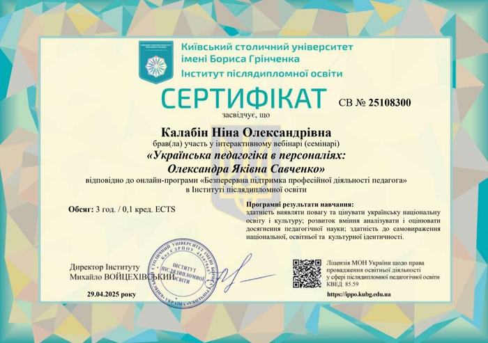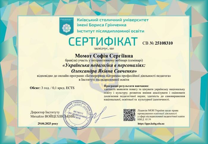 Участь студентів групи ПО-24Б у вебінарі «Педагогині: Олександра Савченко»