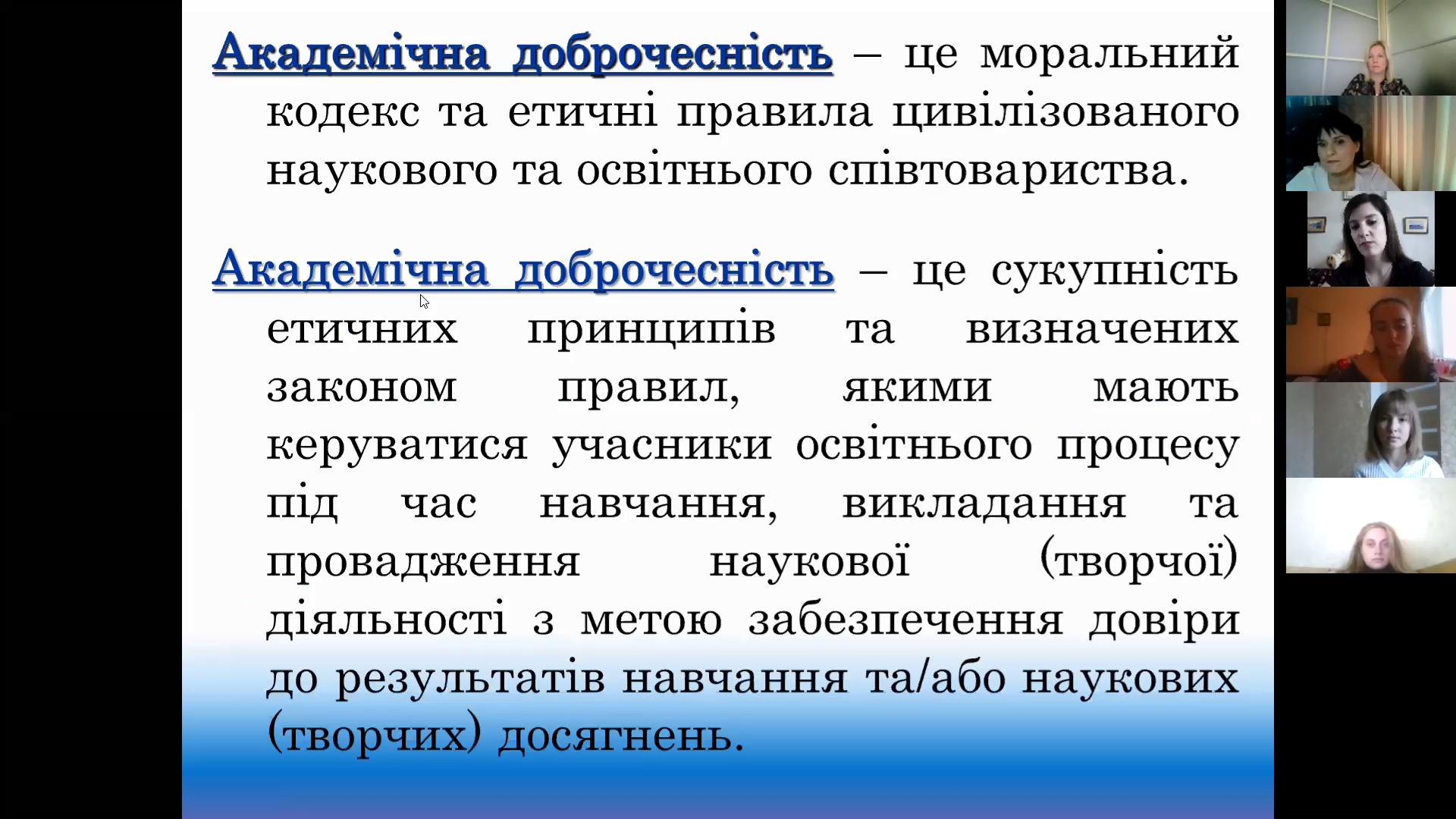 Під час лекції були розглянуті наступні питання: зміст та вимоги до академічної доброчесності, види порушень академічної доброчесності, запобігання академічного плагіату та його виявлення у наукових роботах.