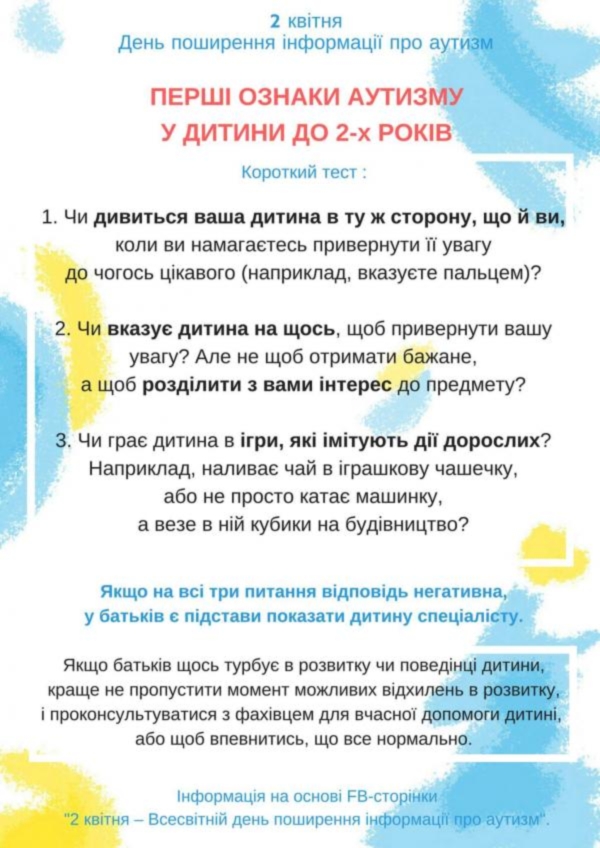 2 квітня – Всесвітній день поширення інформації про аутизм