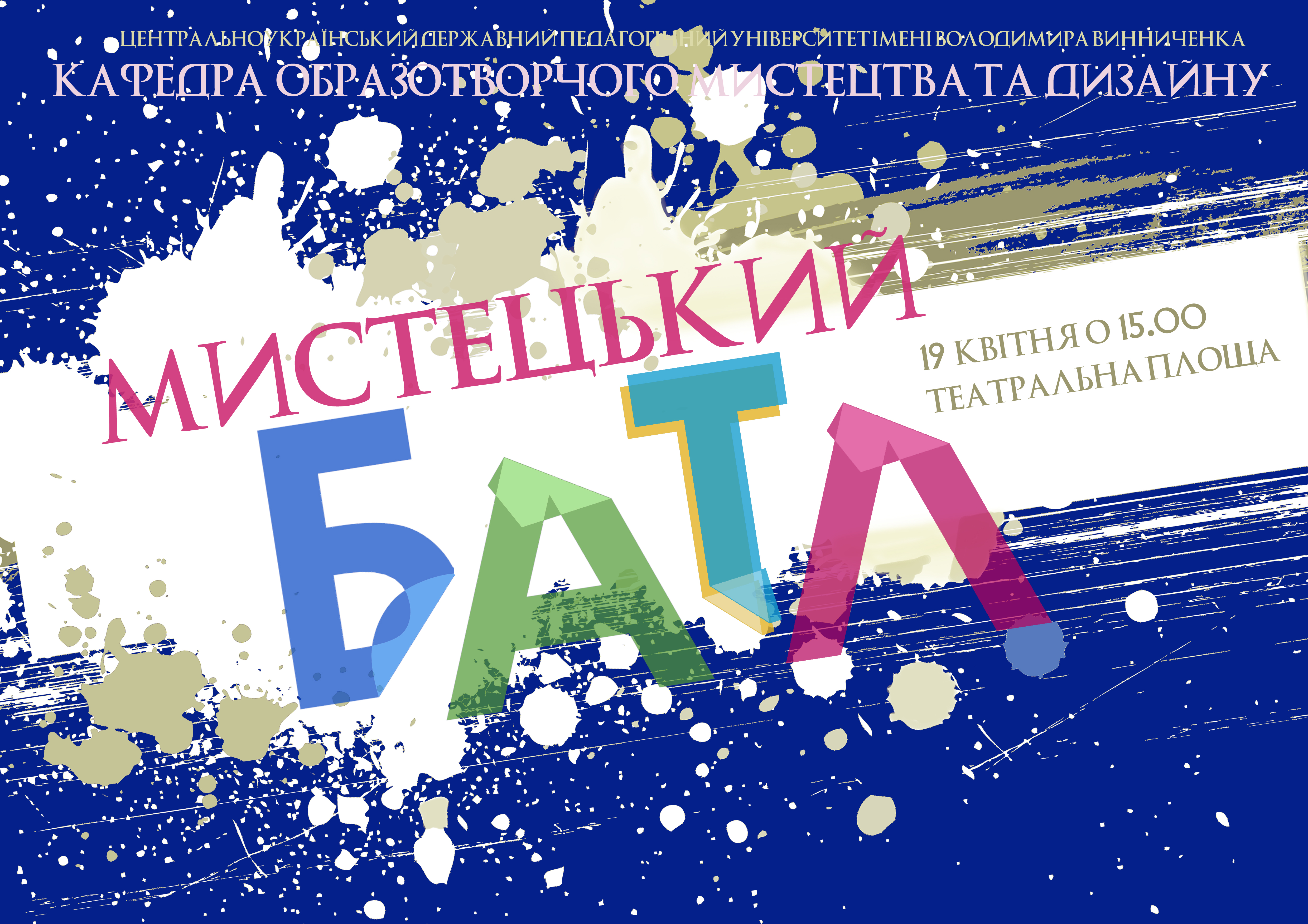Кафедра образотворчого мистецтва та дизайну ЦДПУ ім.В.Винниченка організовує Мистецький батл 19 квітня о 15.00 на Театральній площі.