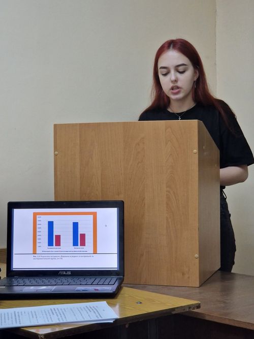 Студентка Яковова З.Є. представила наукове дослідження: «Травматичні події дитинства як фактор розвитку депресивних станів у підлітків», науковий керівник доцент Мамчур І.В. Робота методично оформлена правильно, у вступі чітко сформульовано предмет, об’єкт, мета, завдання дослідження, що дозволило сформулювати принципи дослідження, розв'язати поставлені завдання й досягти мети. Актуальна тема дослідження, поетапність доведення гіпотези й послідовність висновків є сильними сторонами наукового дослідження й сформованого наукового мислення студентки.