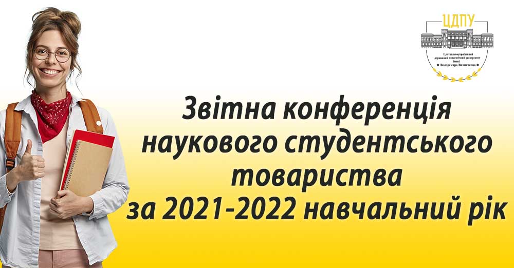 Запрошуємо вас взяти участь у звітній конференції наукового студентського товариства Центральноукраїнського державного університету імені Володимира Винниченка за 2022–2023 навчальний рік.