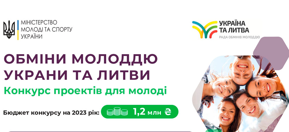 20 березня 2023 року Мінмолодьспортом оголошено прийом заявок на участь у конкурсі на реалізацію проєктів у рамках здійснення обмінів молоддю України та Литви https://bit.ly/40BXz9r, що триватиме до 20 квітня 2023 року.